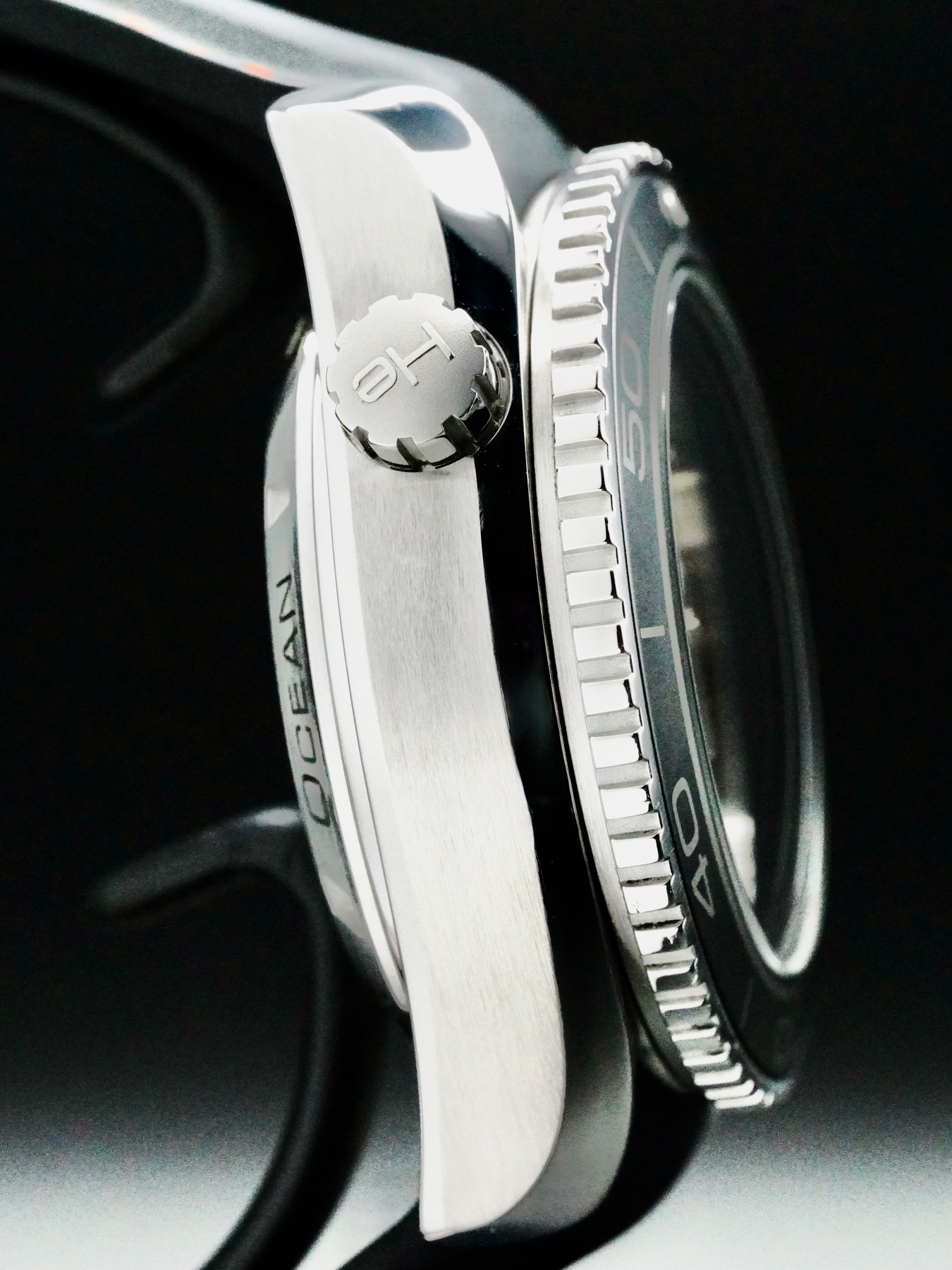 This watch features a 45.5 mm steel case on rubber strap. This watch also sports a black dial. Powered by a mechanical automatic movement. Water resistance up to 600 meters.