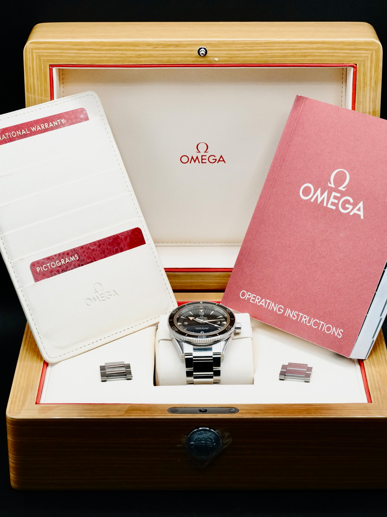 This Omega 233.30.41.21.01.001 Seamaster 300 is in EXCELLENT condition. This watch includes its Original Box, Original Papers, Warranty Card Dated 2020 and 4 Extra Bracelet Links. This watch has been fully authenticated and certified by Exquisite Timepieces.
