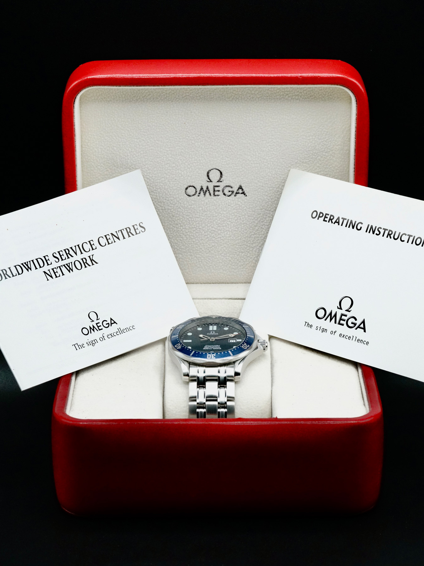 This Omega 2541.80 300m Quartz Blue is in EXCELLENT condition. This watch includes travel box, instruction booklet, no warranty card. This watch has been fully authenticated and certified by Exquisite Timepieces.