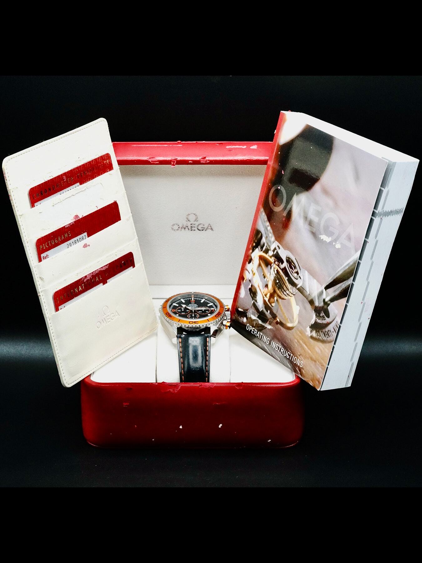 This Omega 2918.50.82 Seamaster Planet Ocean Chronograph is in EXCELLENT condition. This watch includes its Original Box, Original Papers and Warranty card not dated. This watch has been fully authenticated and certified by Exquisite Timepieces.