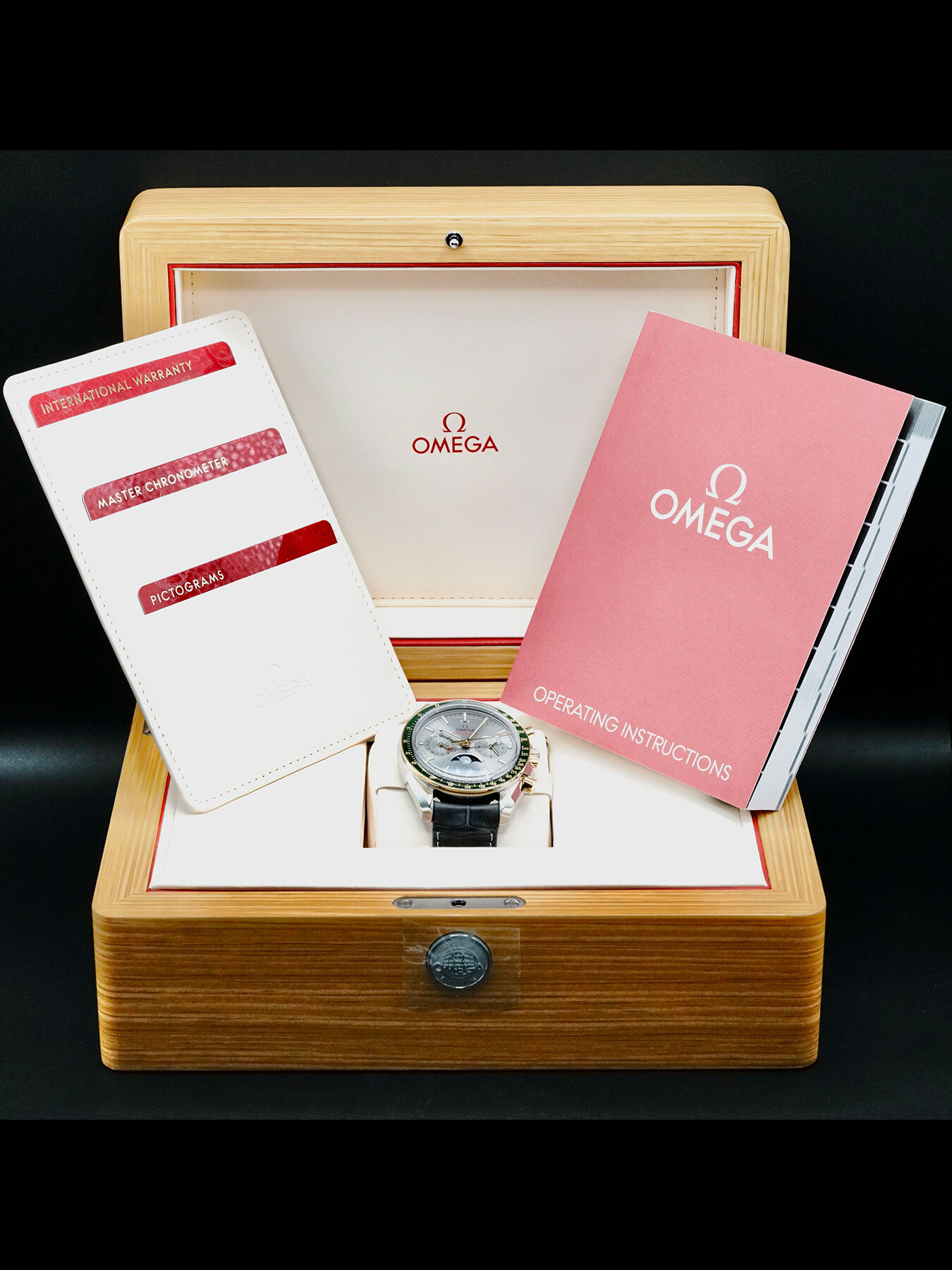 This Omega 304.23.44.52.06.001 Speedmaster Moonwatch Master Chronometer Moonphase is in EXCELLENT condition. This watch includes its Original Box, Original Papers and Warranty Card Dated 2023. This watch has been fully authenticated and certified by Exquisite Timepieces.
