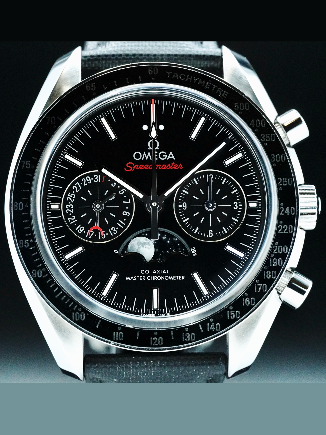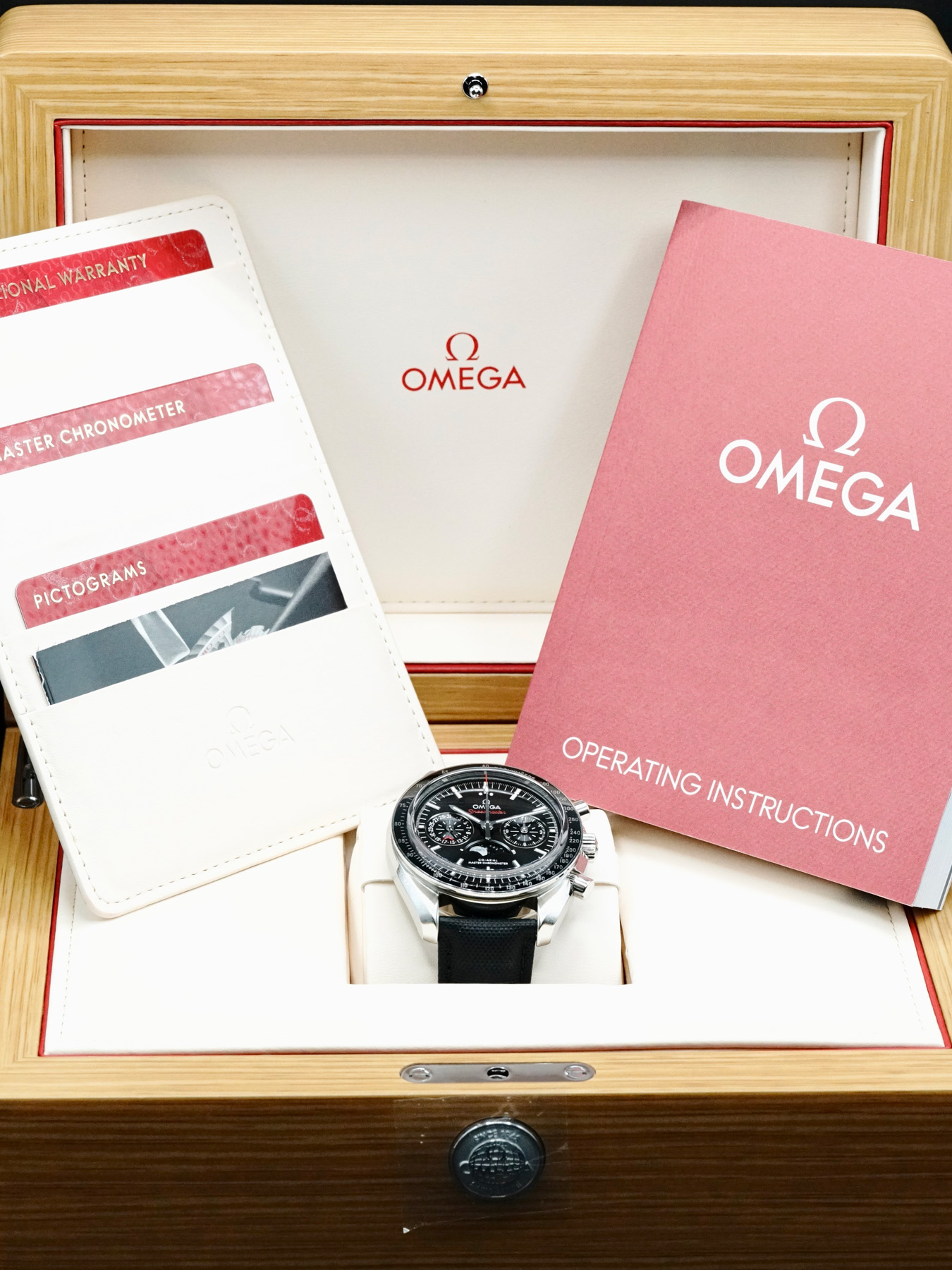 This Omega Speedmaster Moonphase 304.33.44.52.01.001 is in EXCELLENT condition. This watch includes its original box, papers, and warranty card dated for 2023. This watch has been fully authenticated and certified by Exquisite Timepieces.