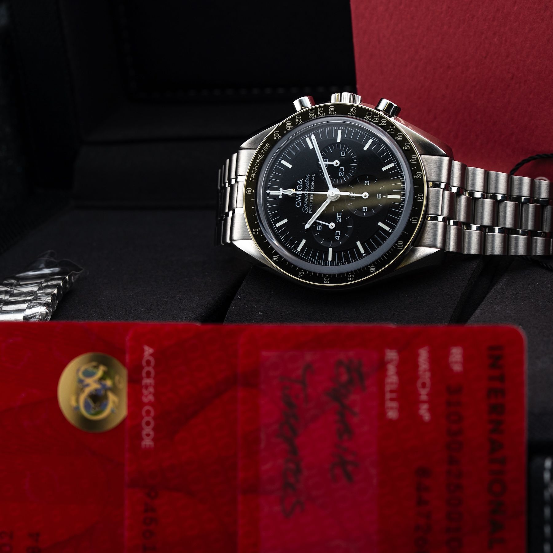 This Omega 310.30.42.50.01.002 Speedmaster Moonwatch Professional Master Chronograph is in GREAT condition, it has box, papers and warranty card dated 02/23/2026. This watch has been fully authenticated and certified by Exquisite Timepieces. Please note, the photos shown are of the actual watch you will receive.