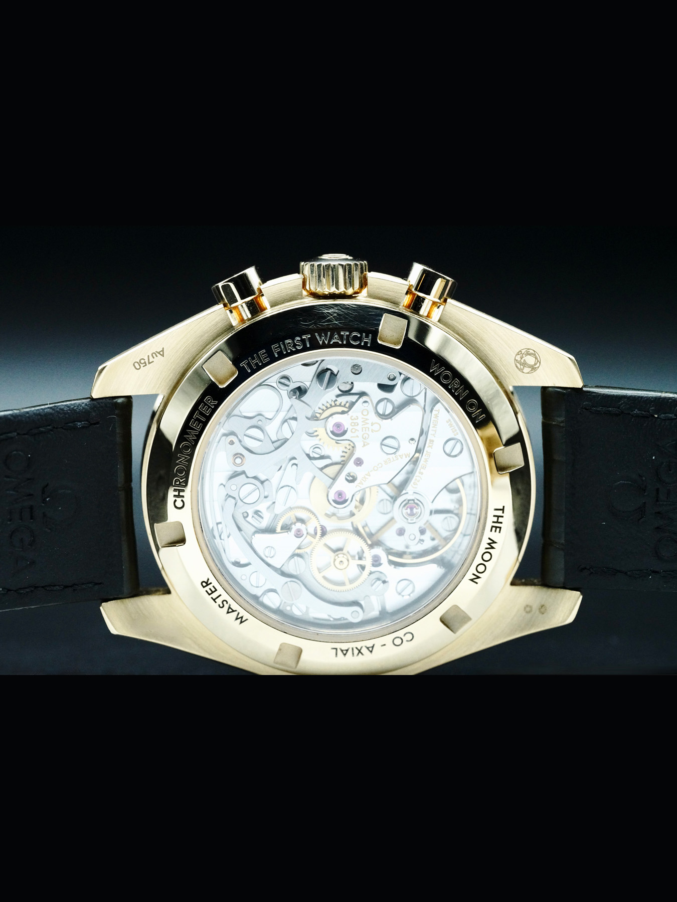 Mechanical Manual movement powered by Omega Caliber 3861 with a power reserve of approximately 50 hours. Water resistance up to 50 meters.