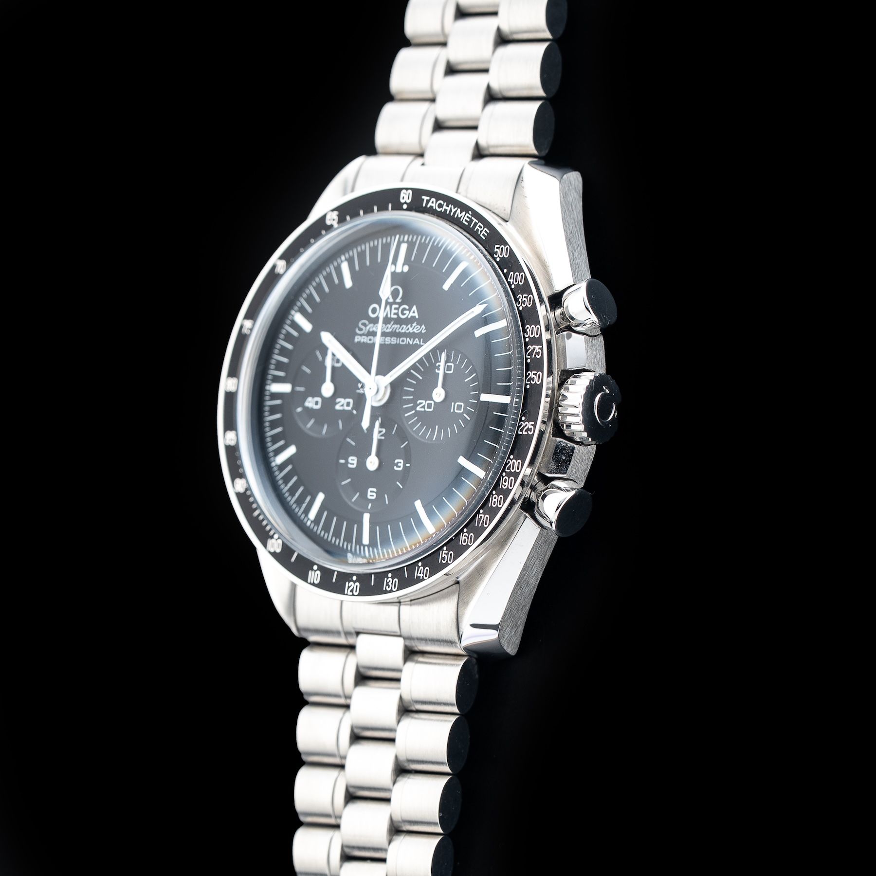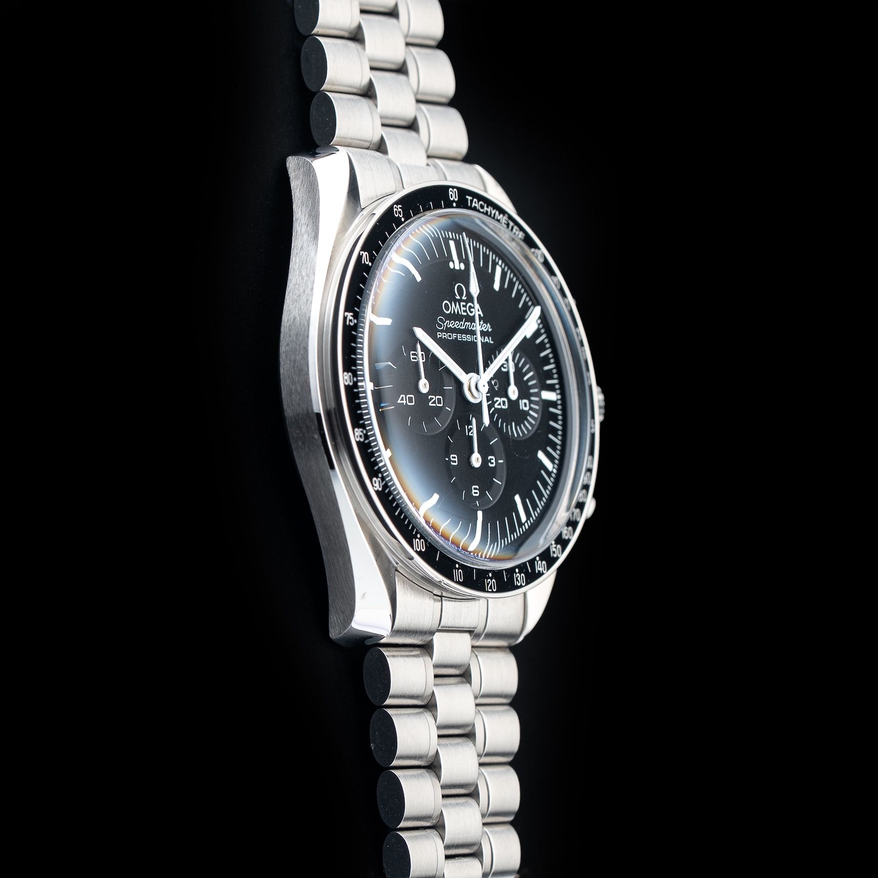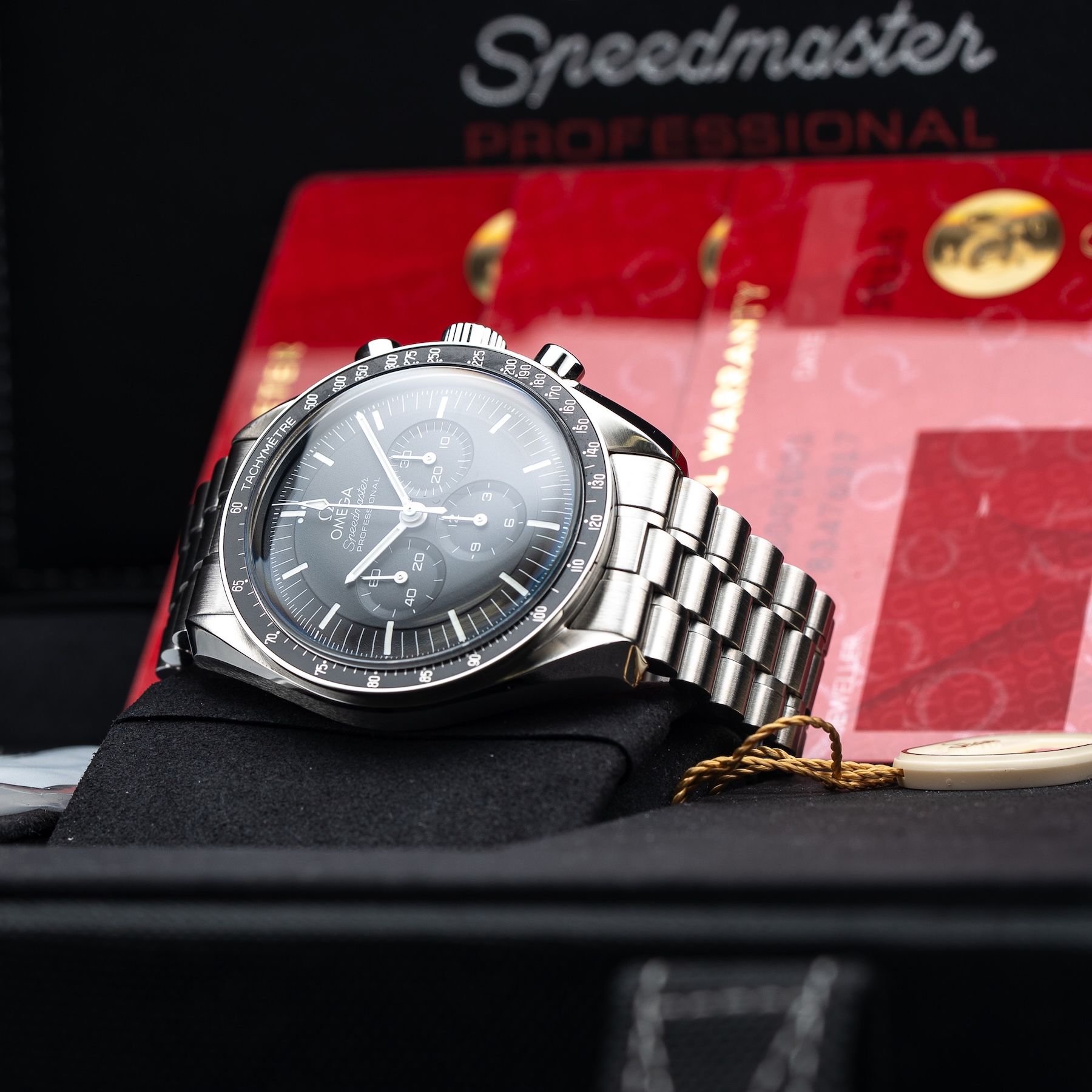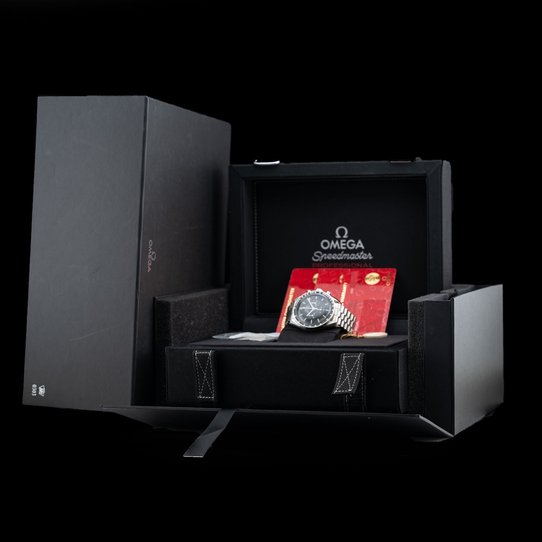 This Omega 310.30.42.50.01.001 Speedmaster Moonwatch Professional Master Chronograph is in GREAT condition. This watch includes its Original Box, Original Papers and Warranty Card Not Dated. This watch has been fully authenticated and certified by Exquisite Timepieces. Please note, the photos shown are of the actual watch you will receive.
