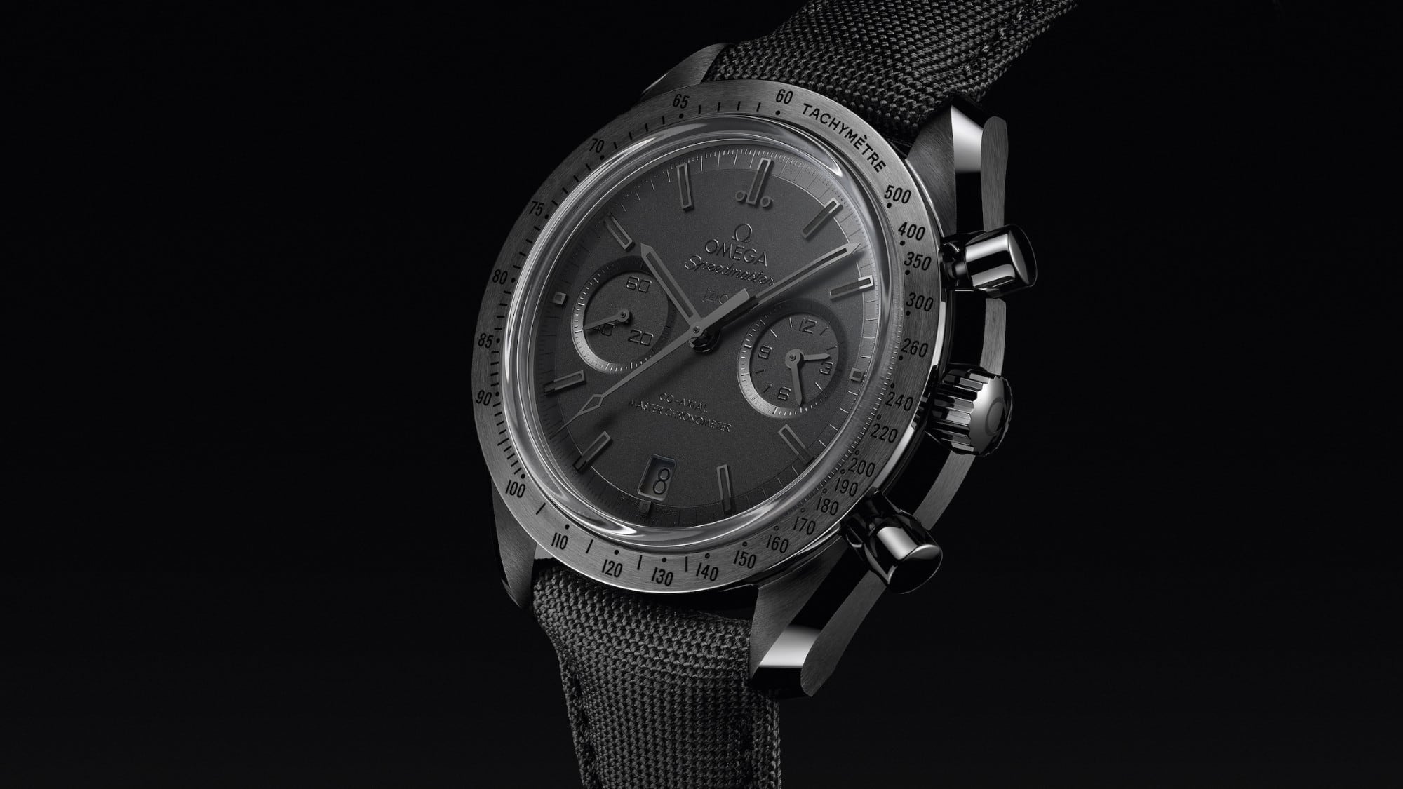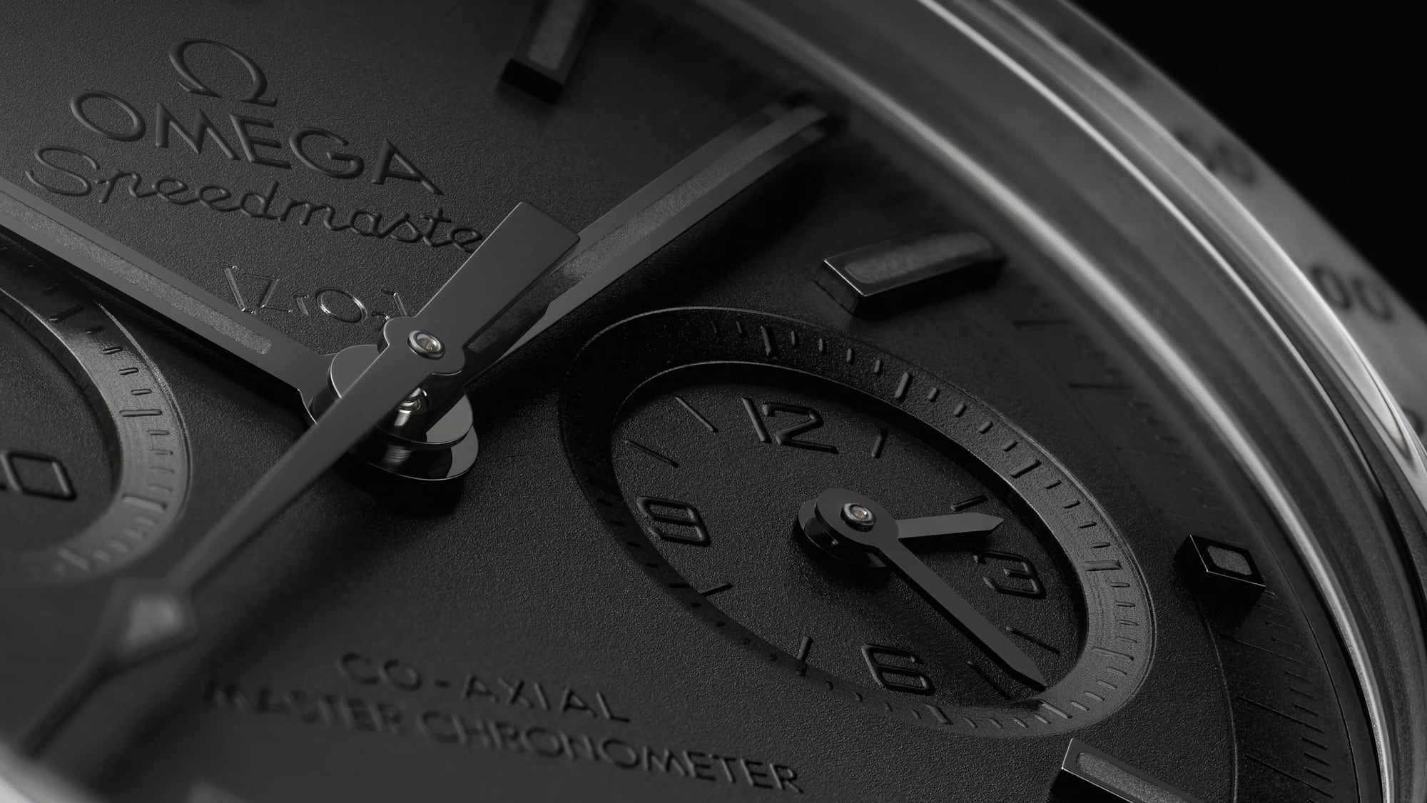 Honouring OMEGA’s legacy of space exploration, this Speedmaster Dark Side of the Moon “Black Black” features a 44.25 mm case in polished-brushed black ceramic. The brushed bezel is also made from black ceramic and features a laser-engraved tachymeter scale that is filled with black Grand Feu enamel.