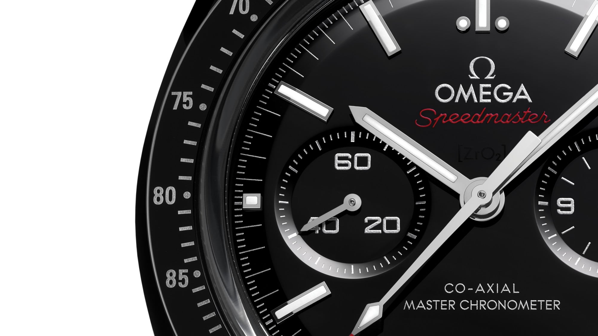 Honouring OMEGA’s legacy of space exploration, this Speedmaster Dark Side of the Moon features a 44.25 mm case in polished-brushed black ceramic. The polished bezel is also made from black ceramic and features a tachymeter scale in Liquidmetal™.