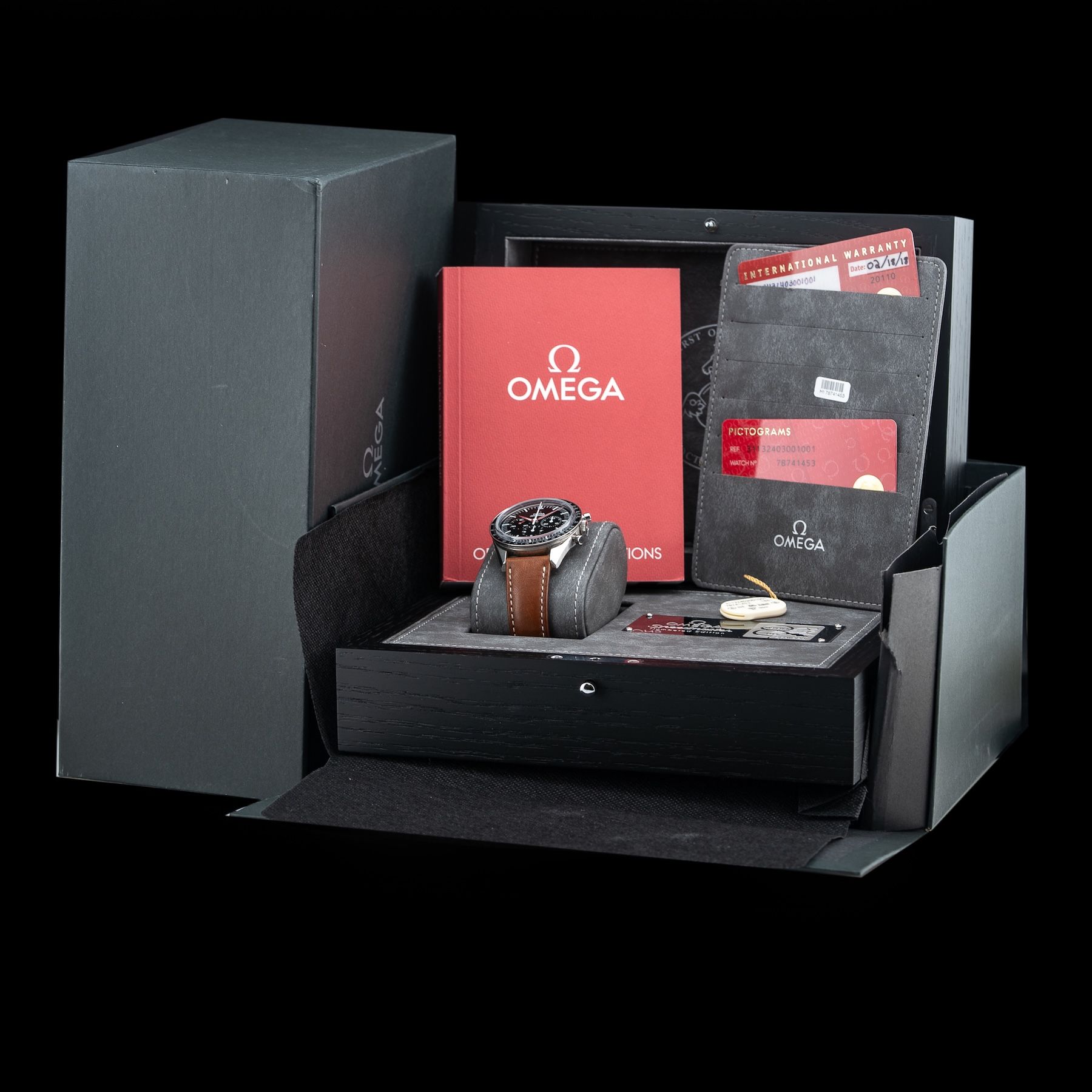 This Omega 311.32.40.30.01.001 Speedmaster First Omega In Space is in GREAT condition, it has boxes, papers and warranty card dated 02/18/18. This watch has been fully authenticated and certified by Exquisite Timepieces. Please note, the photos shown are of the actual watch you will receive.