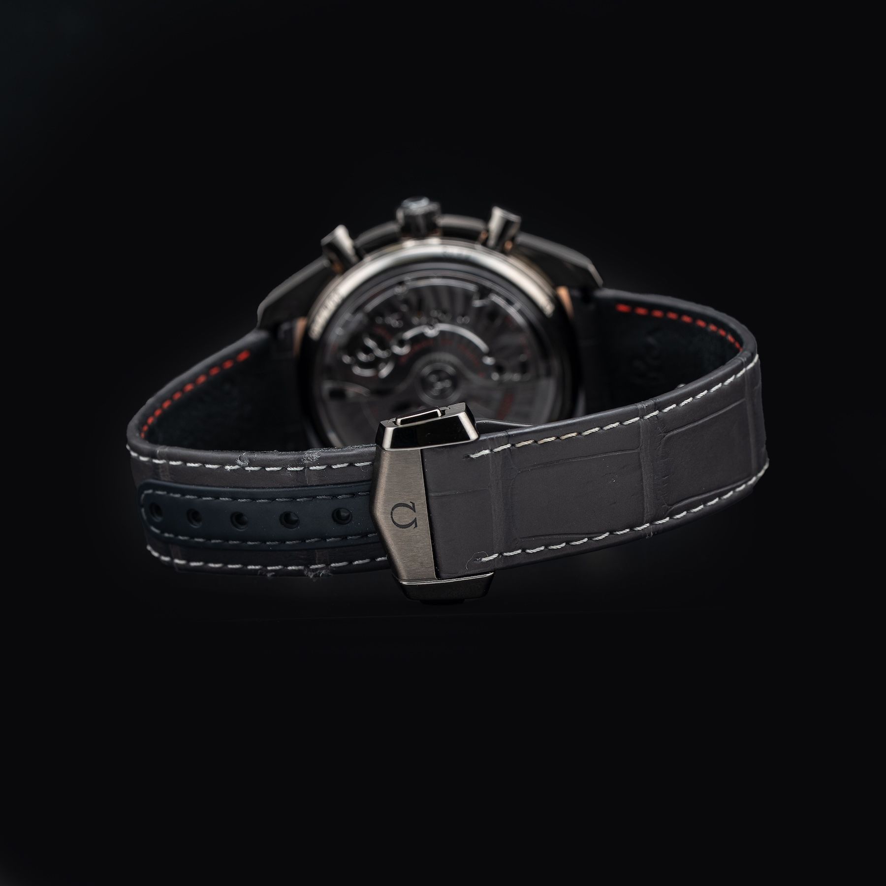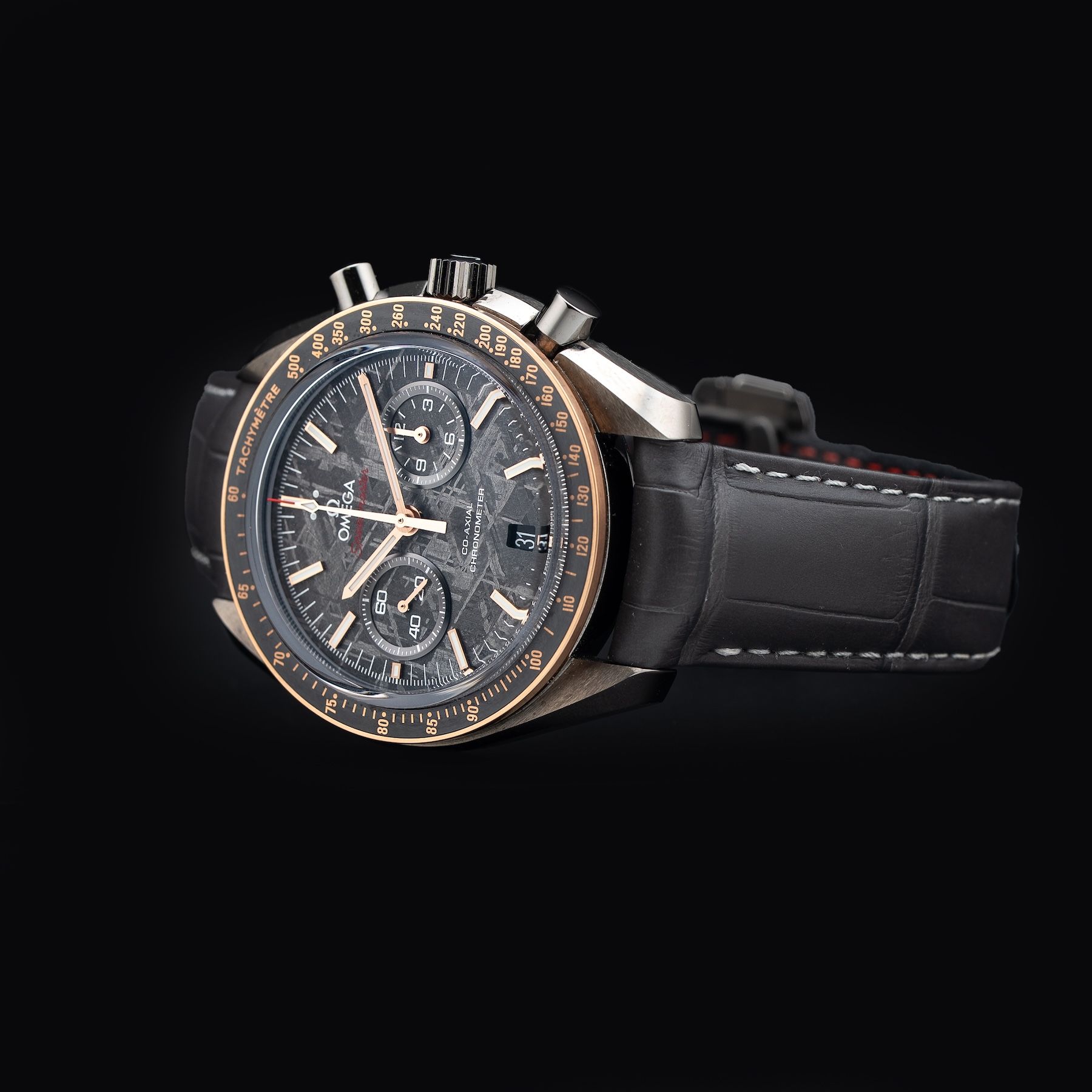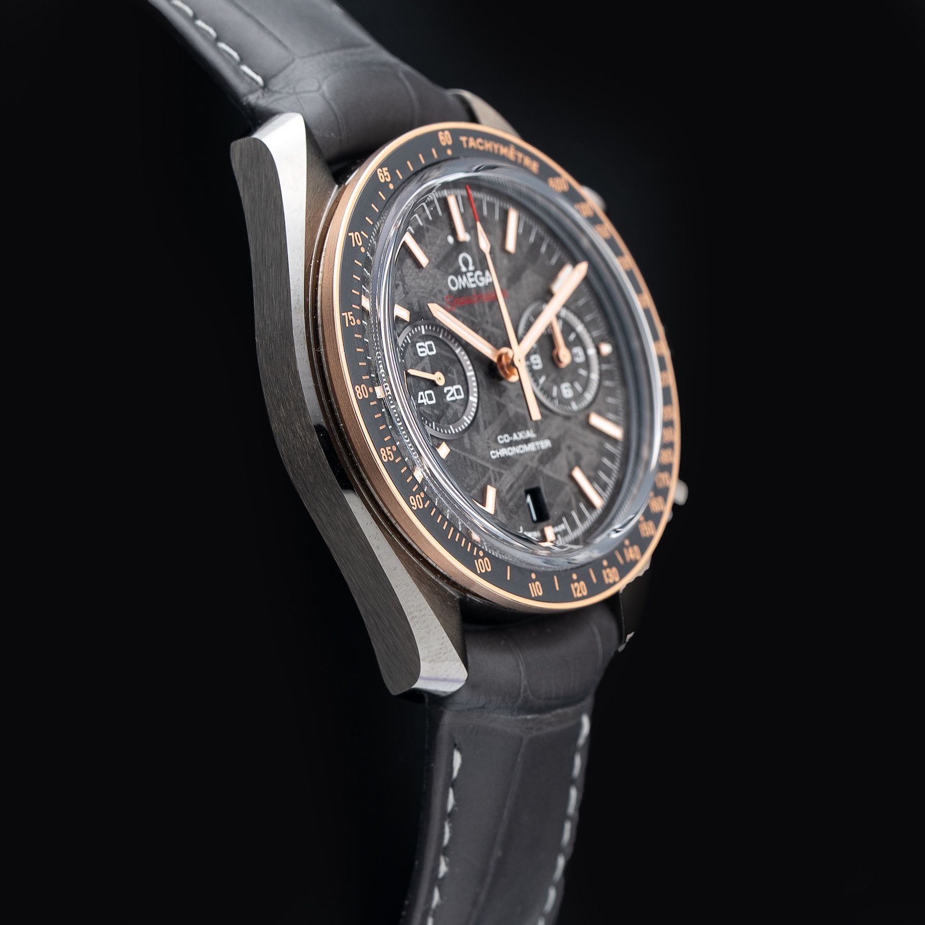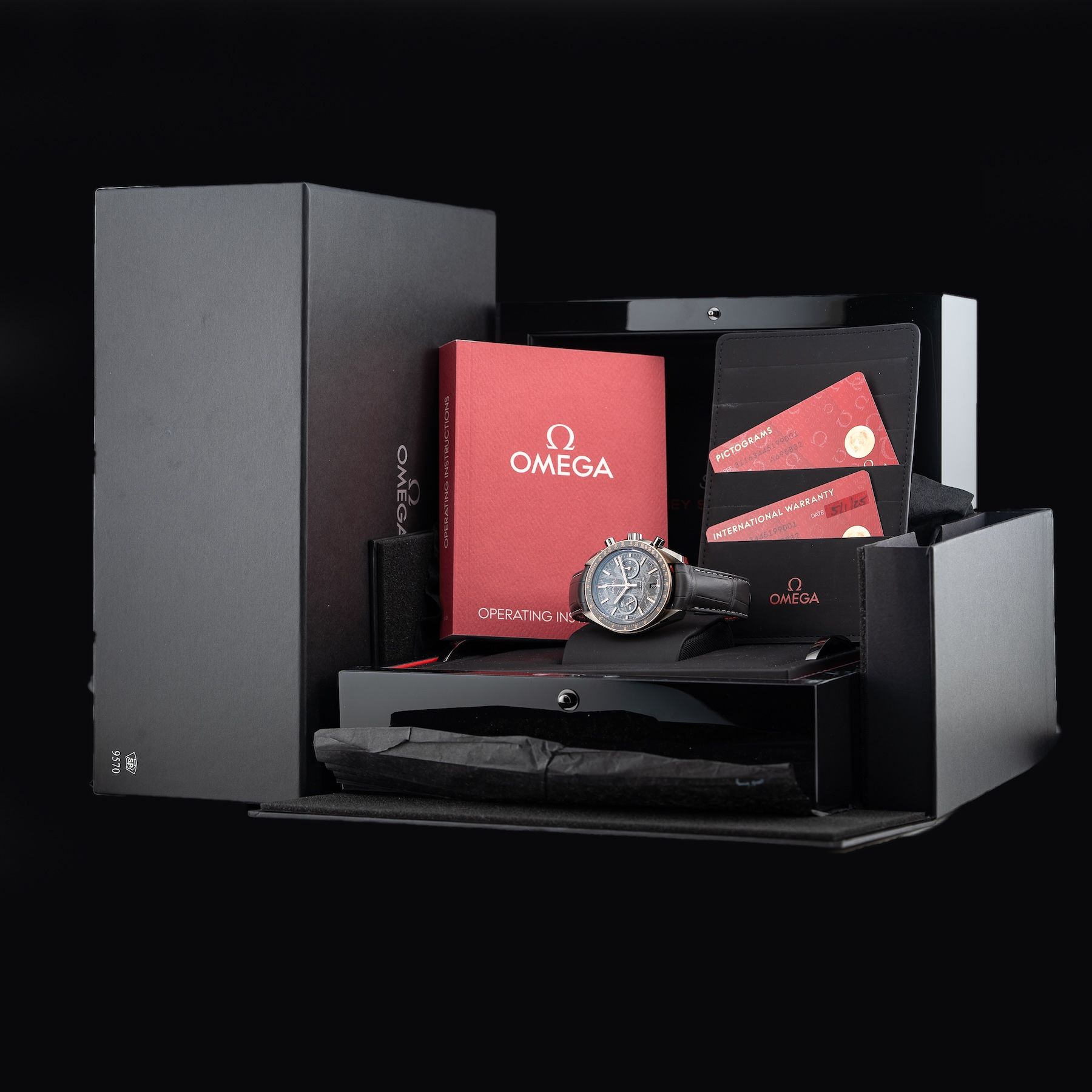 This Omega 311.63.44.51.99.001 Speedmaster Grey Side of The Moon Meteorite is in GREAT condition. This watch includes its Original Box, Original Papers and Warranty Card Dated 05/25. This watch has been fully authenticated and certified by Exquisite Timepieces.