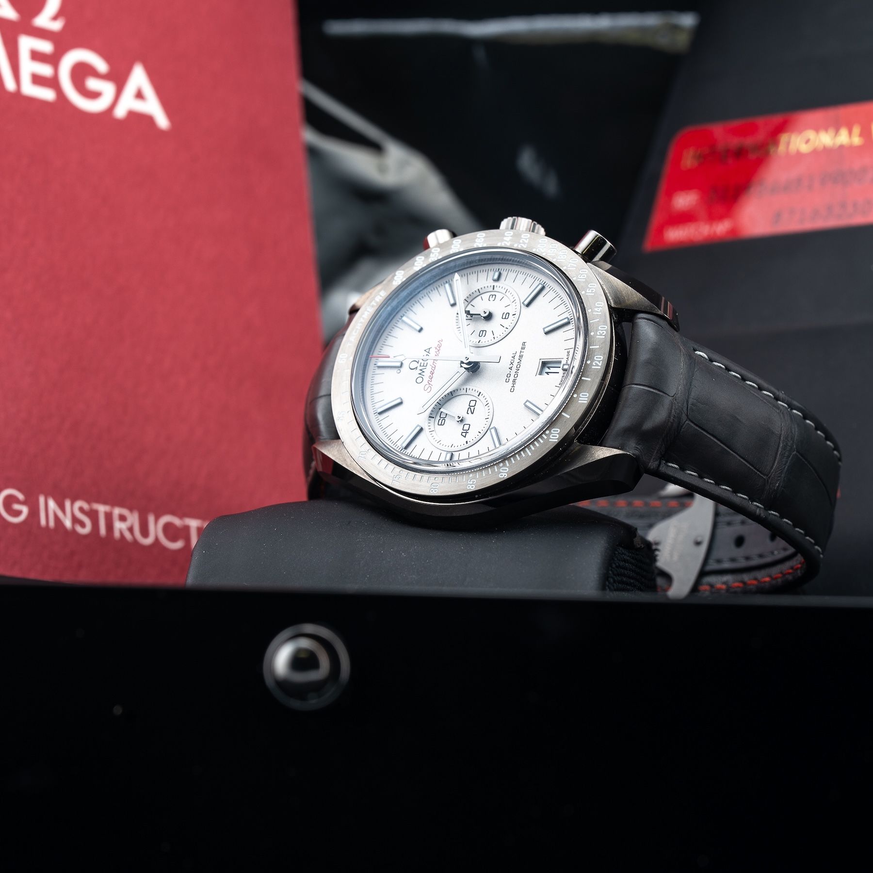 This Omega 311.93.44.51.99.002 Grey Side of the Moon 44.25mm is in GREAT condition. This watch includes its Original Box, Original Papers and Warranty Card Dated 2025. This watch has been fully authenticated and certified by Exquisite Timepieces. Please note, the photos shown are of the actual watch you will receive.