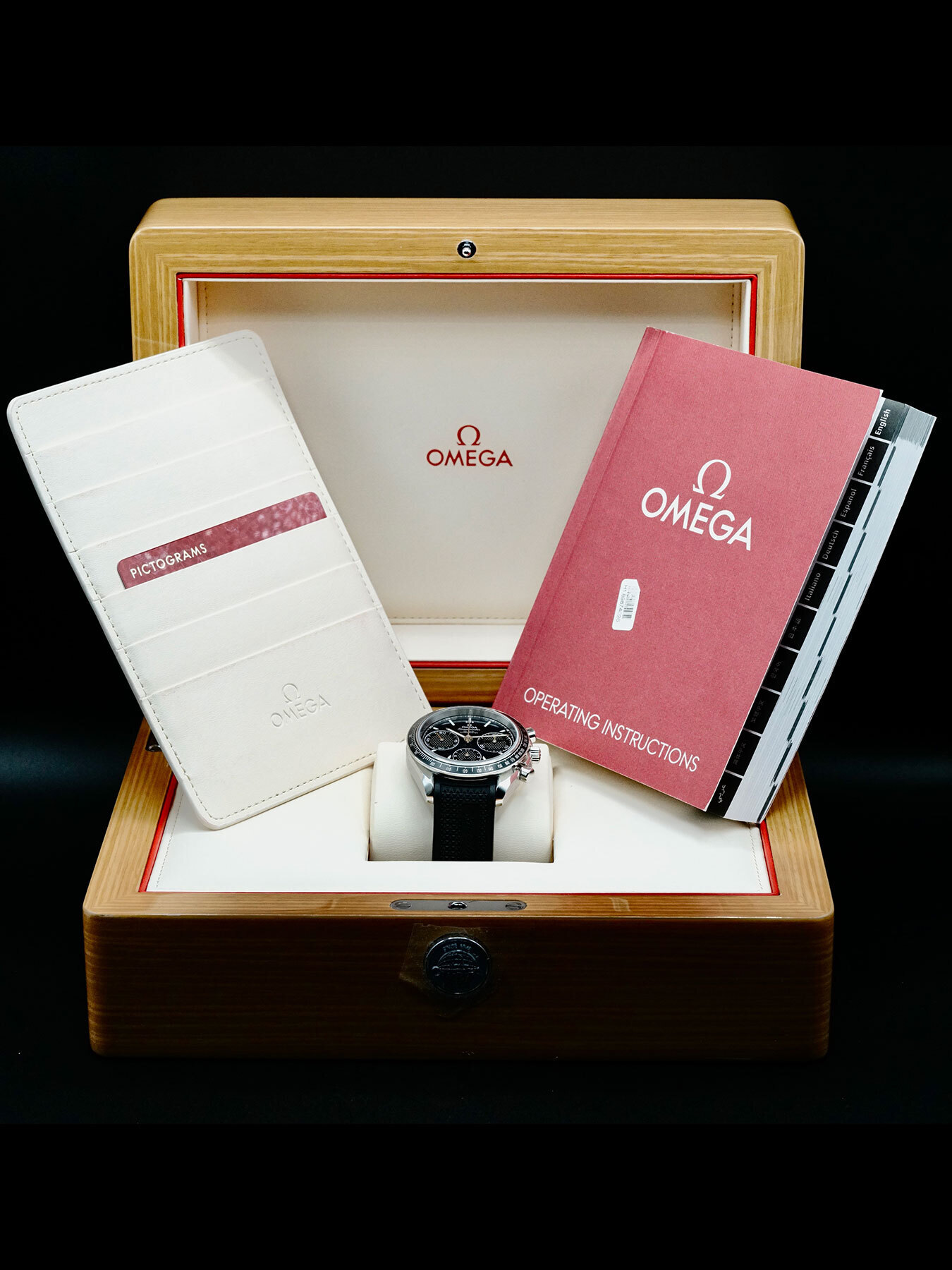 This Omega 326.32.40.50.03.001 Racing Co-Axial Chronograph 40mm is in GREAT condition. This watch includes original box, instruction booklet pictogram, now warranty card. This watch has been fully authenticated and certified by Exquisite Timepieces.
