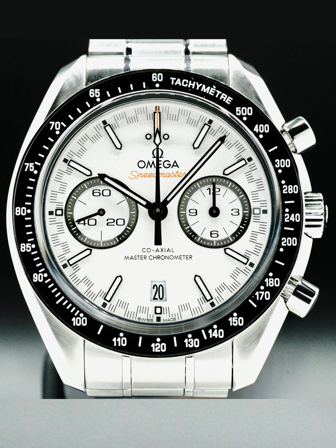This Omega Speedmaster Co-Axial Chronograph Racing 329.30.44.51.04.001 is in EXCELLENT condition. This watch includes its original box, operating instructions, and international warranty dated for December 2021.