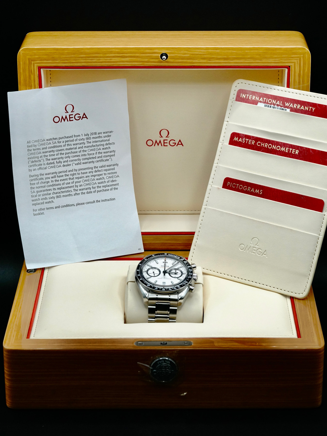 This Omega Speedmaster Co-Axial Chronograph Racing 329.30.44.51.04.001 is in EXCELLENT condition. This watch includes its original box and warranty card not dated. This watch has been fully authenticated and certified by Exquisite Timepieces.