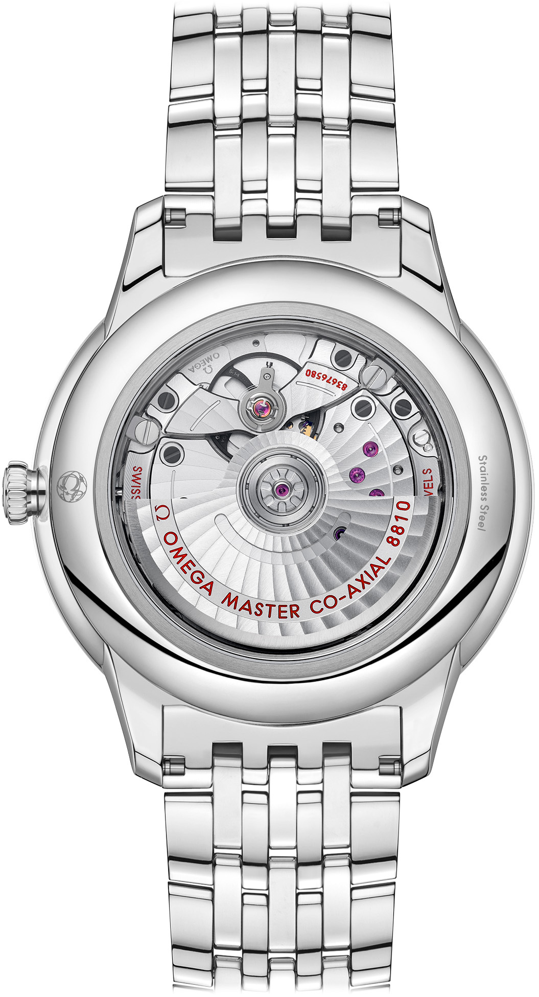 This Master Chronometer certified watch is presented on a stainless steel bracelet and is driven by the OMEGA Master Co-Axial Calibre 8810, which can be admired through the scratch-resistant sapphire crystal caseback.