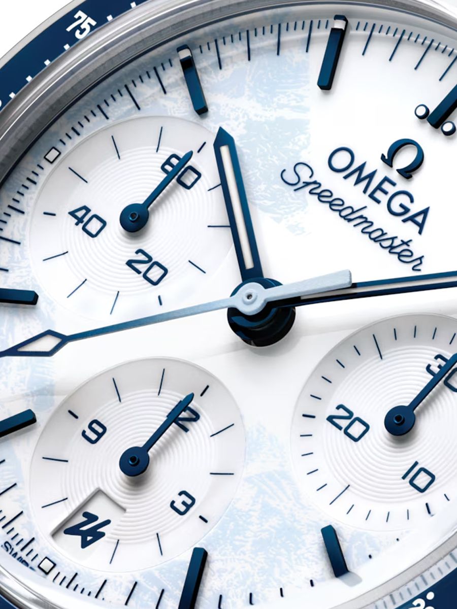 Celebrating OMEGA’s role as Official Timekeeper of the Olympic Winter Games, this exclusive timepiece combines the Speedmaster’s timeless design with unique details in tribute to Milano Cortina 2026.