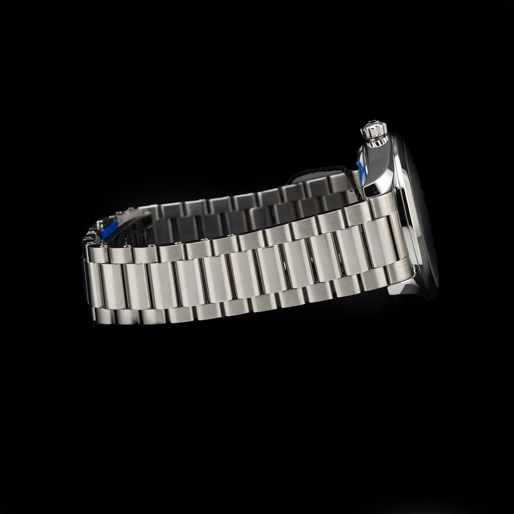Presented on a polished and brushed bracelet, with beautifully rounded links, this classic Seamaster is powered by OMEGA’s Co-Axial Master Chronometer calibre 8800, certified at the industry’s highest standard by the Swiss Federal Institute of Metrology (METAS).