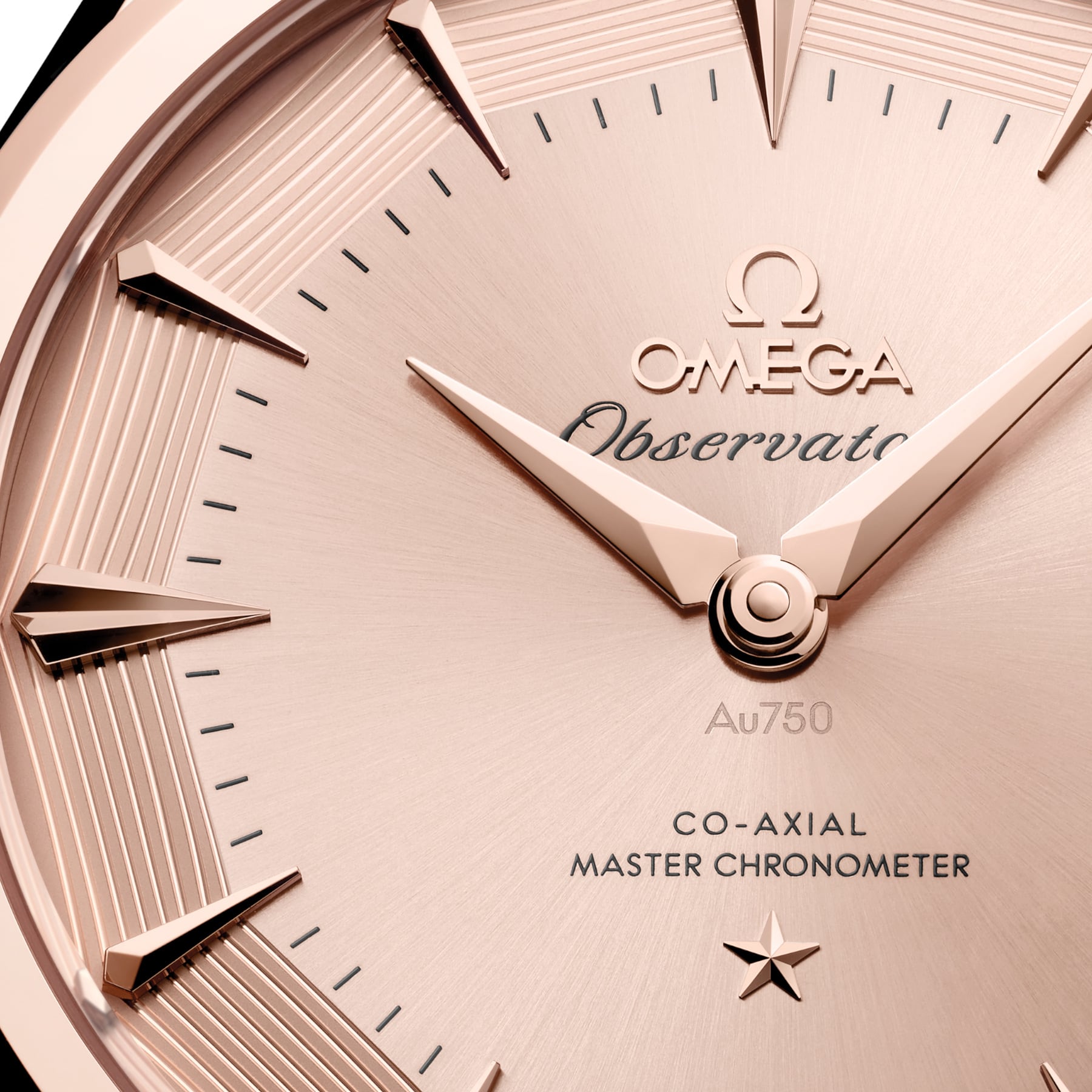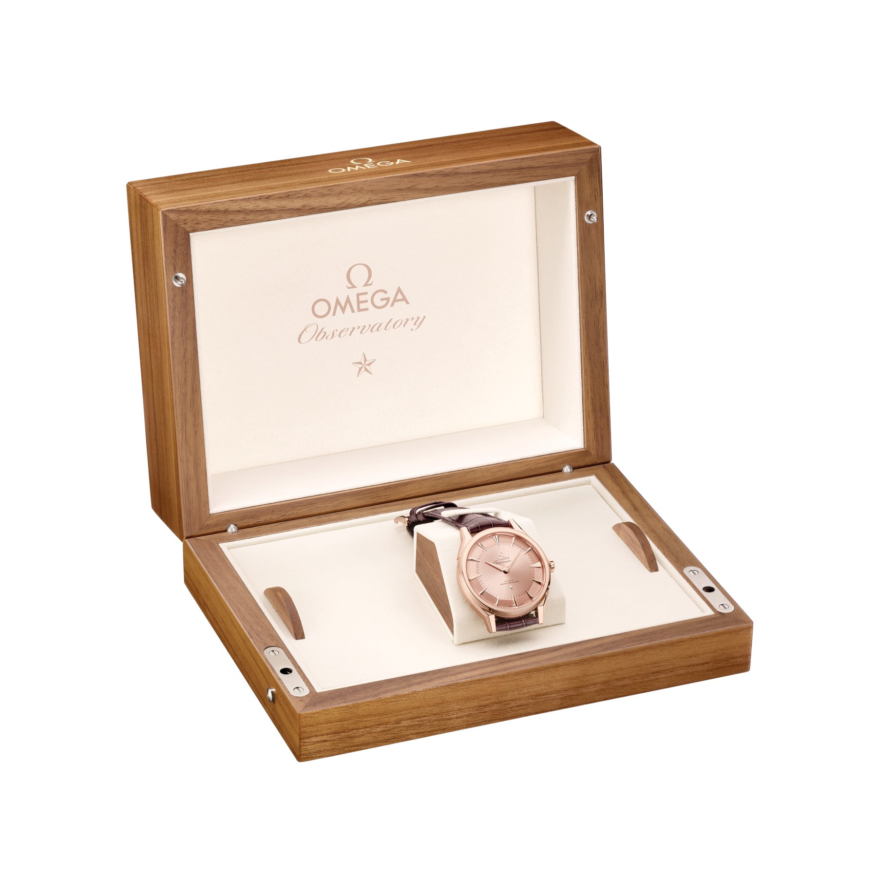 The watch is driven by OMEGA’s calibre 8915, the world’s first two-hand watch to achieve Master Chronometer certification approved by METAS. The movement is visible through the sapphire crystal caseback, revealing a 18K Sedna™ Gold skeletonised rotor embellished by an applied medallion featuring the laser-engraved Constellation Observatory emblem in contrasting finish. The watch is presented in a special marquetry box featuring the Constellation Observatory emblem.