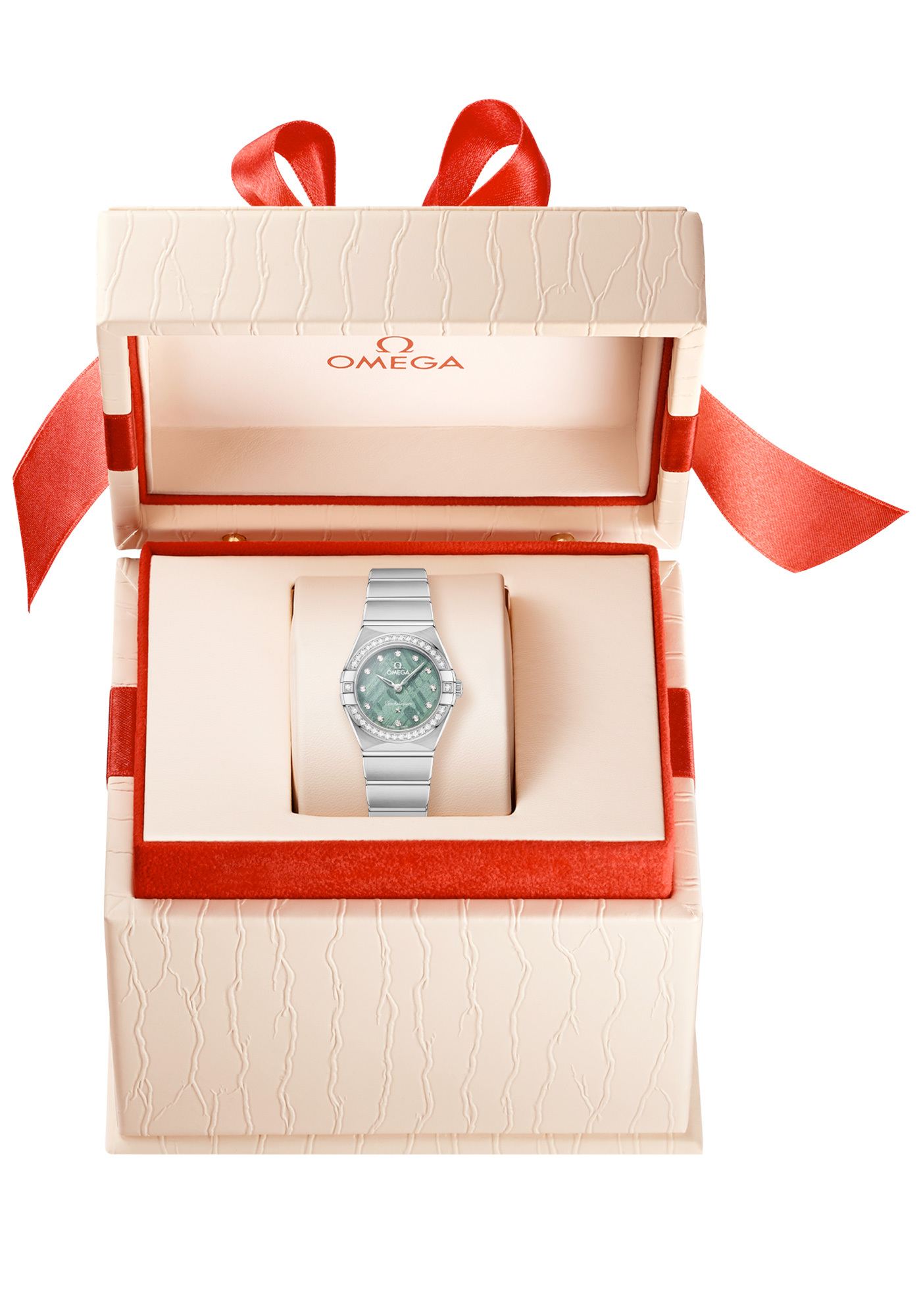 The 25 mm watch is presented with a case and mono-rang bracelet created from stainless steel, with signature Constellation features including the polished claws, half-moon facets, and a diamond-paved bezel.