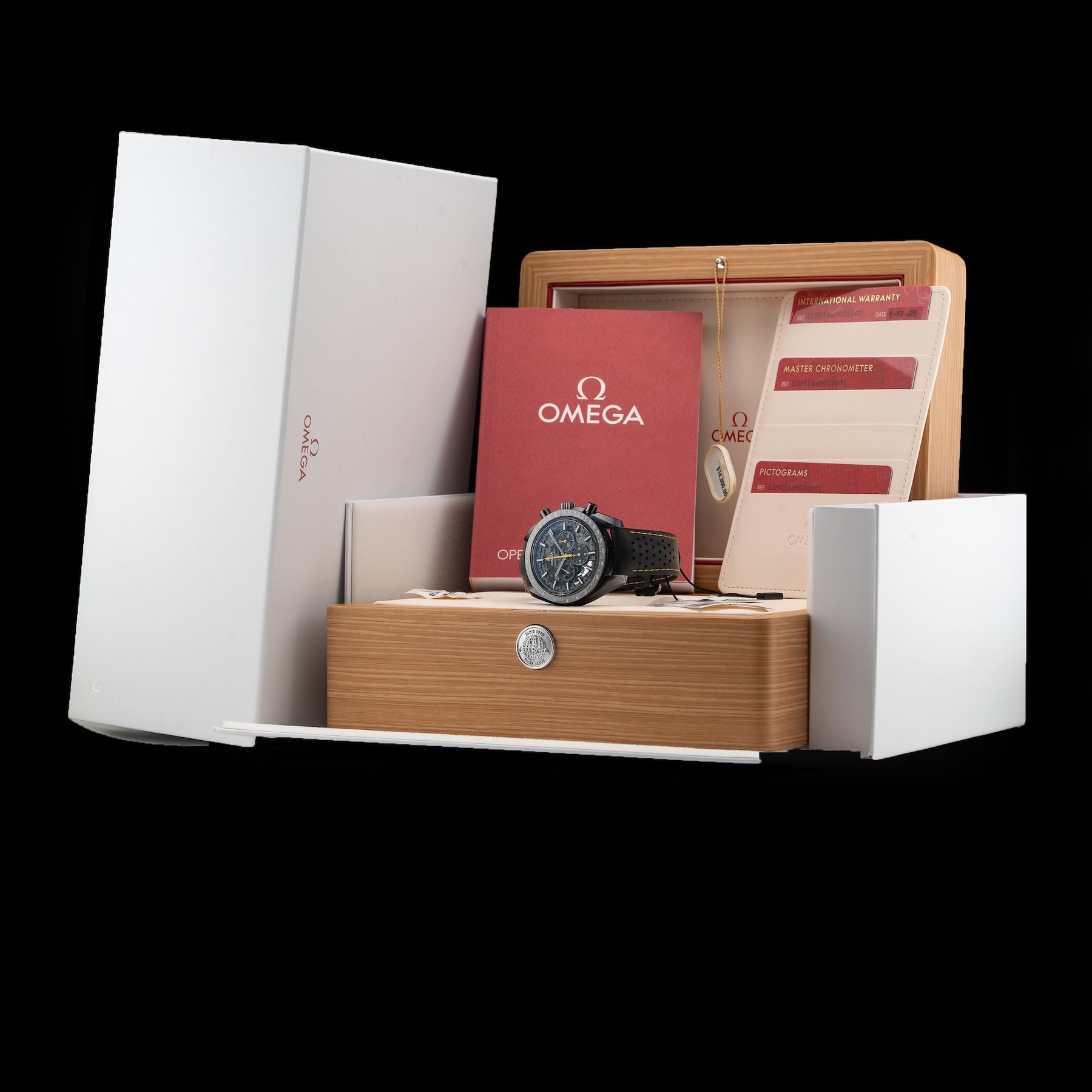 This Omega Dark Side Of The Moon Apollo 8 310.92.44.50.01.001 is in GREAT condition. This watch includes its Original Box, Original Papers and Warranty Card Dated 1/17/2025. This watch has been fully authenticated and certified by Exquisite Timepieces. Please note, the photos shown are of the actual watch you will receive.
