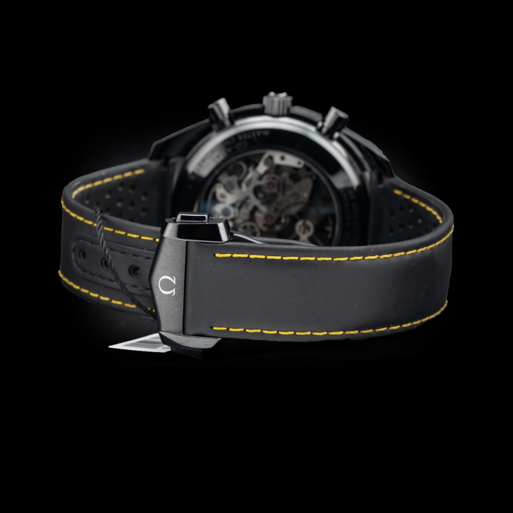 This watch features a 44.25mm ceramic case on leather strap. This watch also sports a black dial. Powered by a mechanical manual movement. Water resistance up to 30 meters.