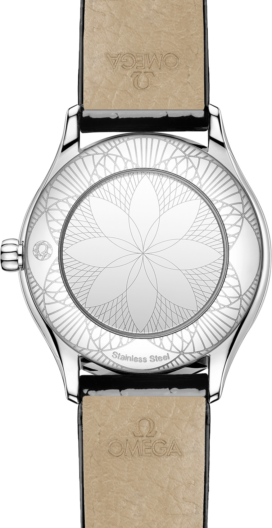 Special mirrored caseback with a metallised “Her Time” pattern