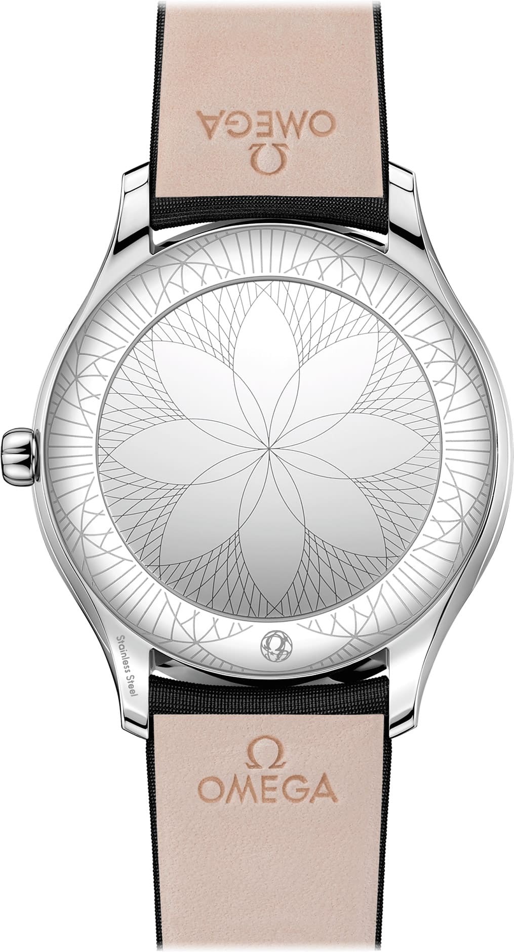 The watch is driven by the OMEGA calibre 4061, which sits behind a special mirrored caseback with a “Her Time” pattern. Finally, the watch is presented on a black fabric strap.
