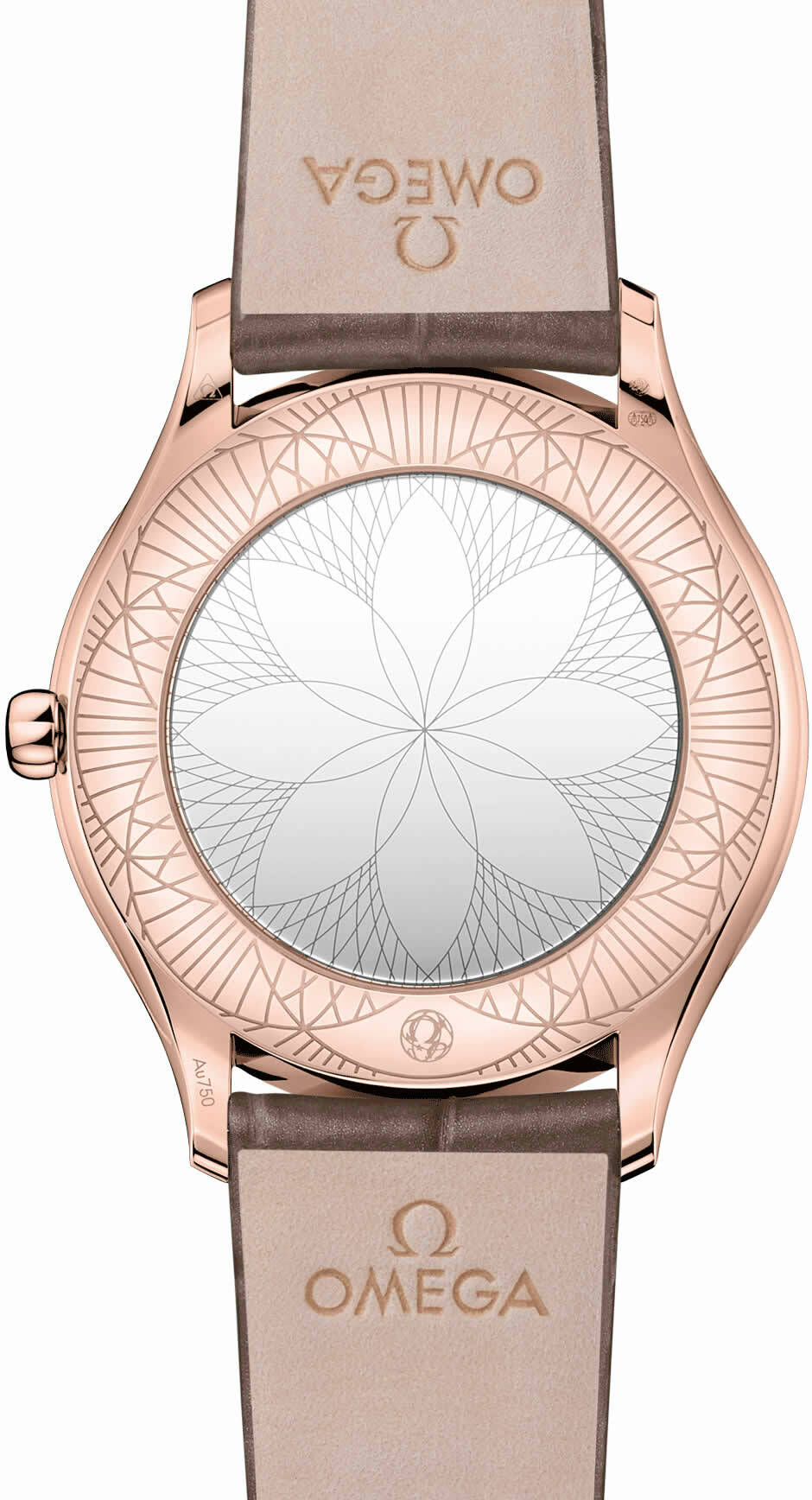 The watch is driven by the OMEGA calibre 4061, which sits behind a special mirrored caseback with a “Her Time” pattern. Finally, the watch is presented on a taupe-brown leather strap.