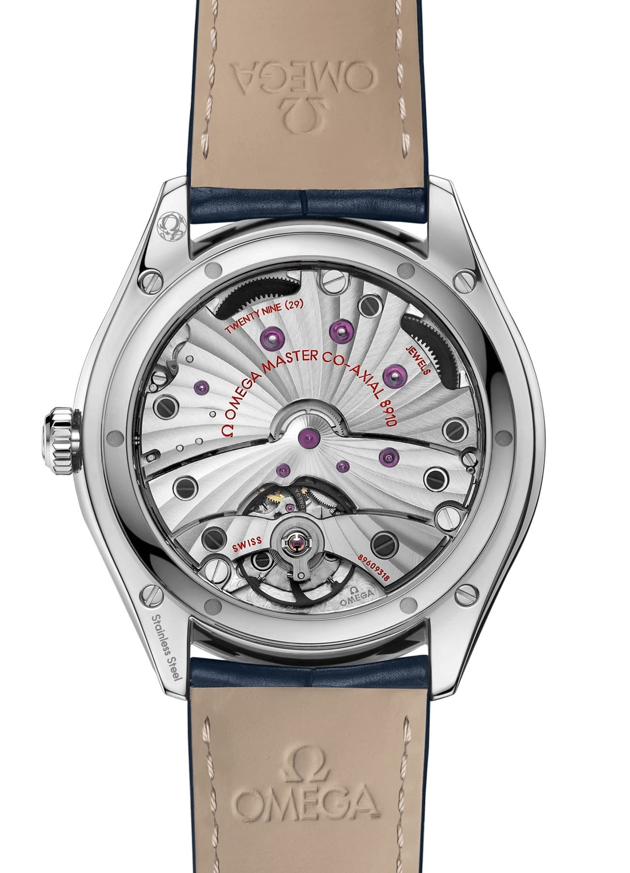 Characterised by its thin and elegant case, the Trésor line was first launched by OMEGA in 1949 and housed the legendary 30mm calibre. More than half a century later, it continues to impress with one of today’s most advanced mechanical movements. This model has a 40 mm stainless steel case with a diamond-paved bezel and is presented on a blue leather strap. The domed blue patterned dial includes a date window at 6 o'clock as well as hands and indexes in 18K white gold. Inside, this De Ville Trésor is powered by the OMEGA Master Co-Axial Calibre 8910 and is certified as a Master Chronometer at the industry’s highest standard of precision, chronometric performance and magnetic resistance.