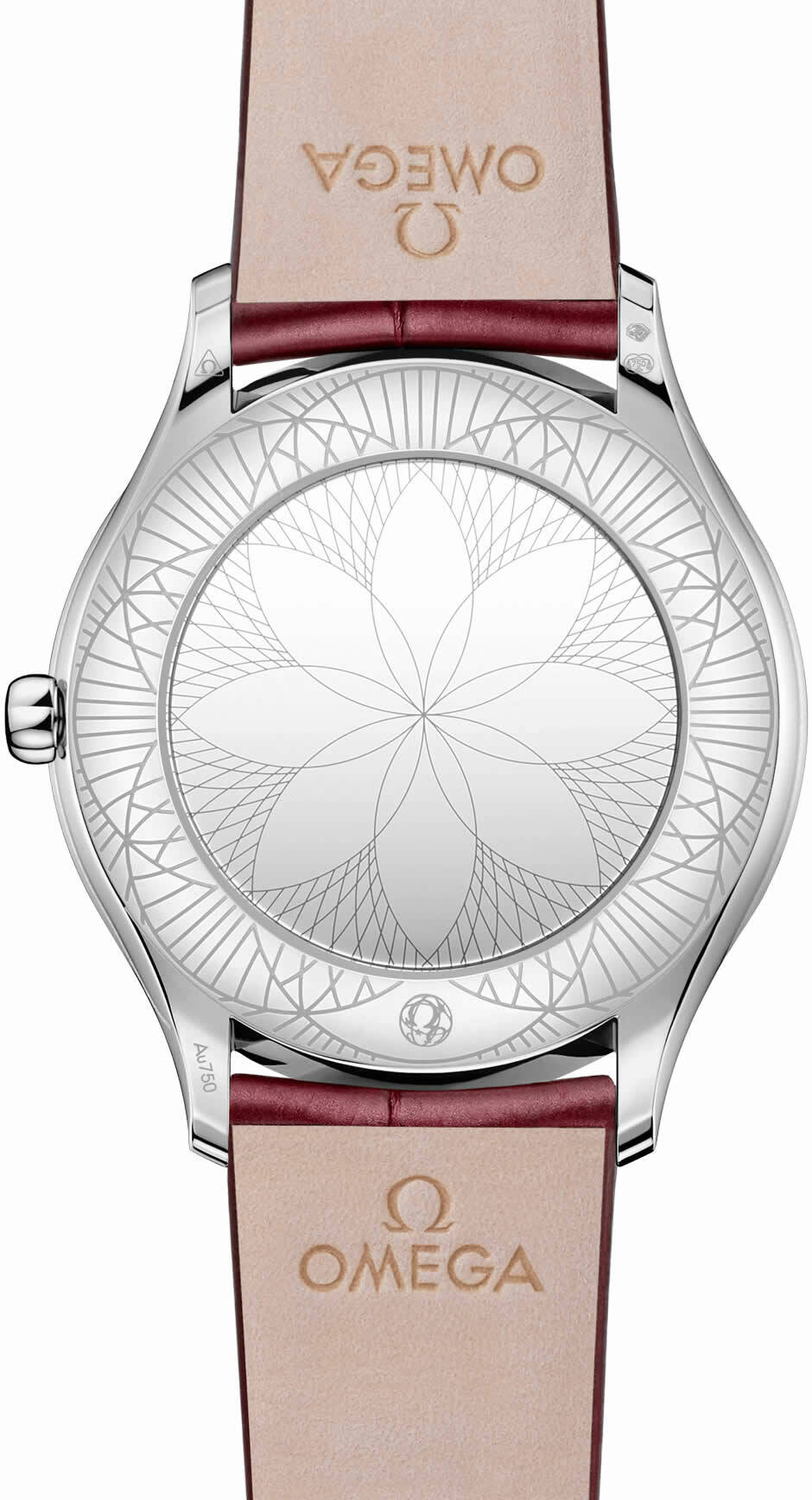 Turning the watch over reveals a special mirrored caseback with “Her Time” pattern.