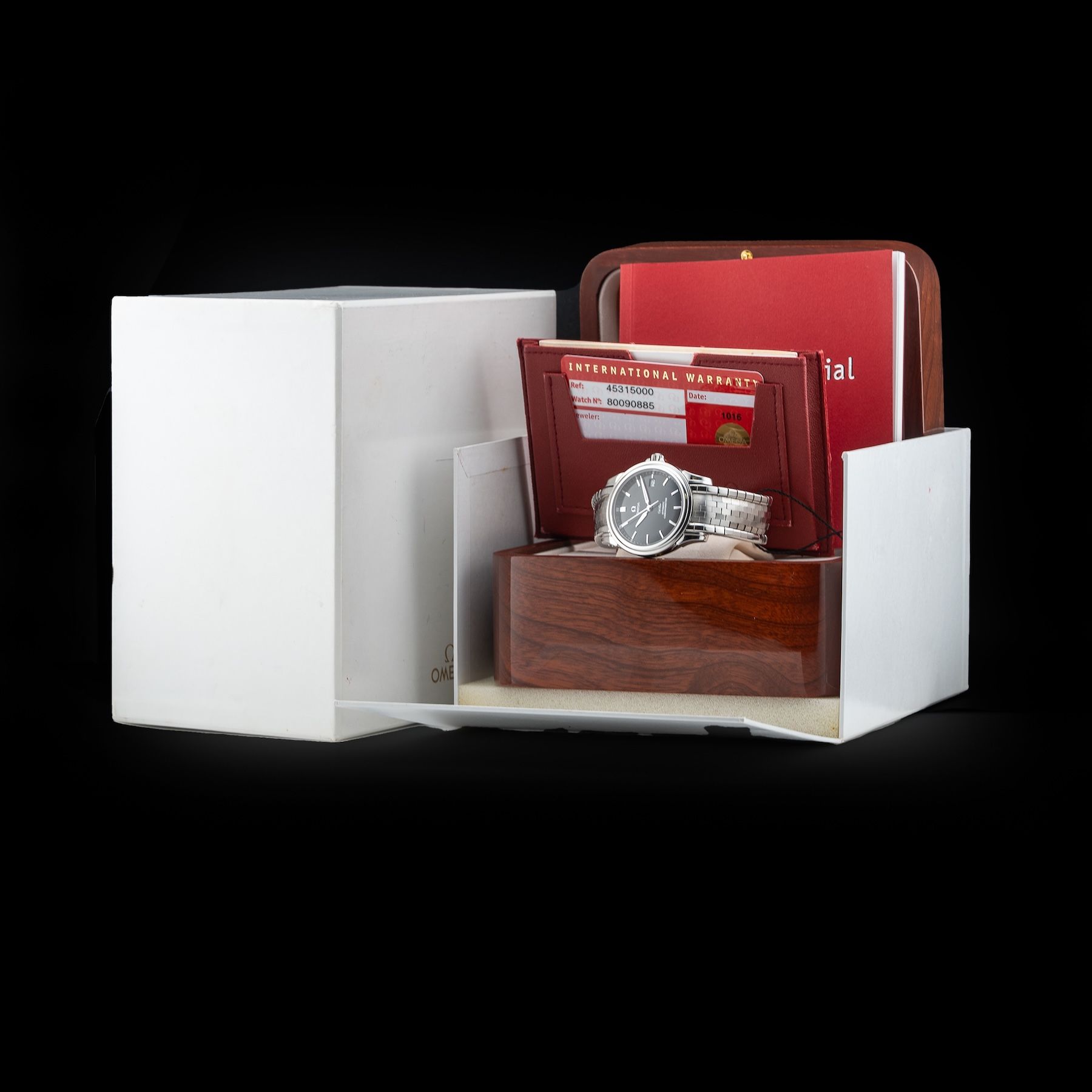 This Omega Deville 4531.50.00 is in GREAT condition. This watch includes its Original Box, Original Papers and Warranty Card Not Dated. This watch has been fully authenticated and certified by Exquisite Timepieces. Please note, the photos shown are of the actual watch you will receive.