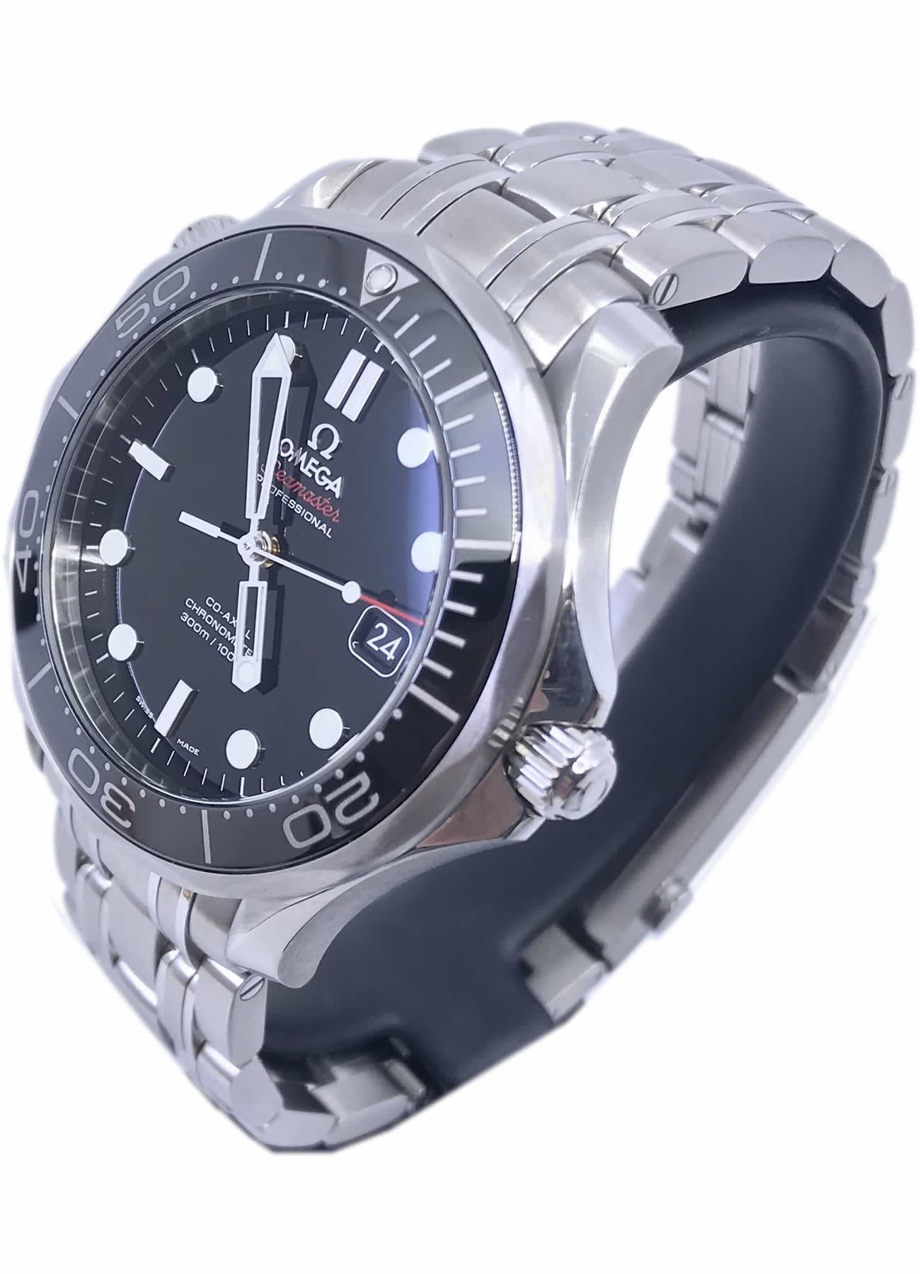 The watch is presented on a stainless steel bracelet. This OMEGA Seamaster Diver 300M is powered by the Co-Axial calibre 2500.