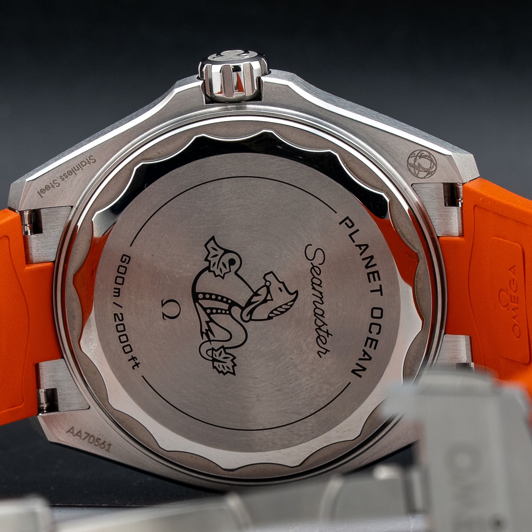 This watch features a 42mm stainless steel case on rubber strap. This watch also sports a black dial. Powered by a mechanical automatic movement. Water resistance up to 600 meters.