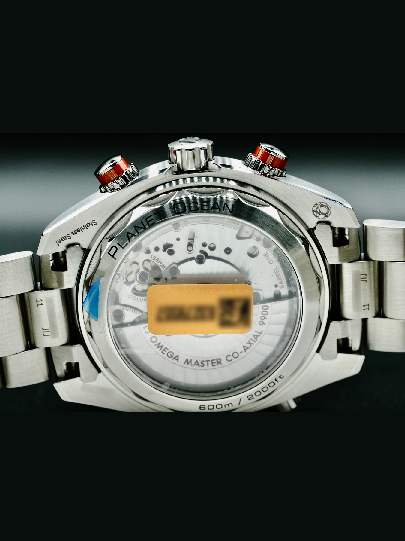 The watch is water resistant to 600 metres / 2000 feet / 60 bar and has a helium-escape valve. The OMEGA Master Chronometer calibre 9900 at the heart of this timepiece can be seen through the transparent caseback. To achieve Master Chronometer status, it has passed the 8 rigorous tests set by METAS (The Swiss Federal Institute of Metrology).