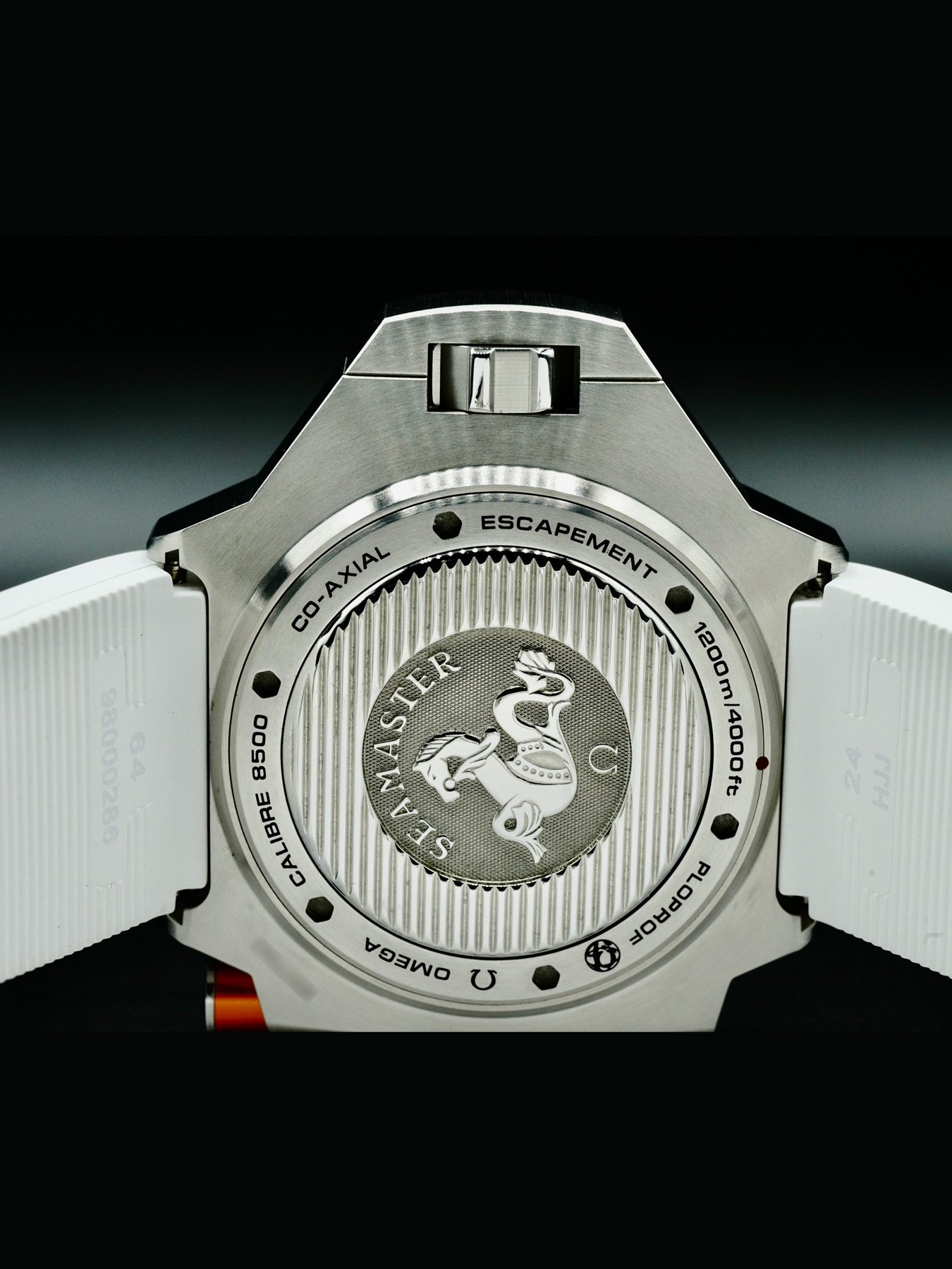 Powered by a Mechanical Automatic Movement, Caliber Omega 8500. Water resistance up to 1200 meters.