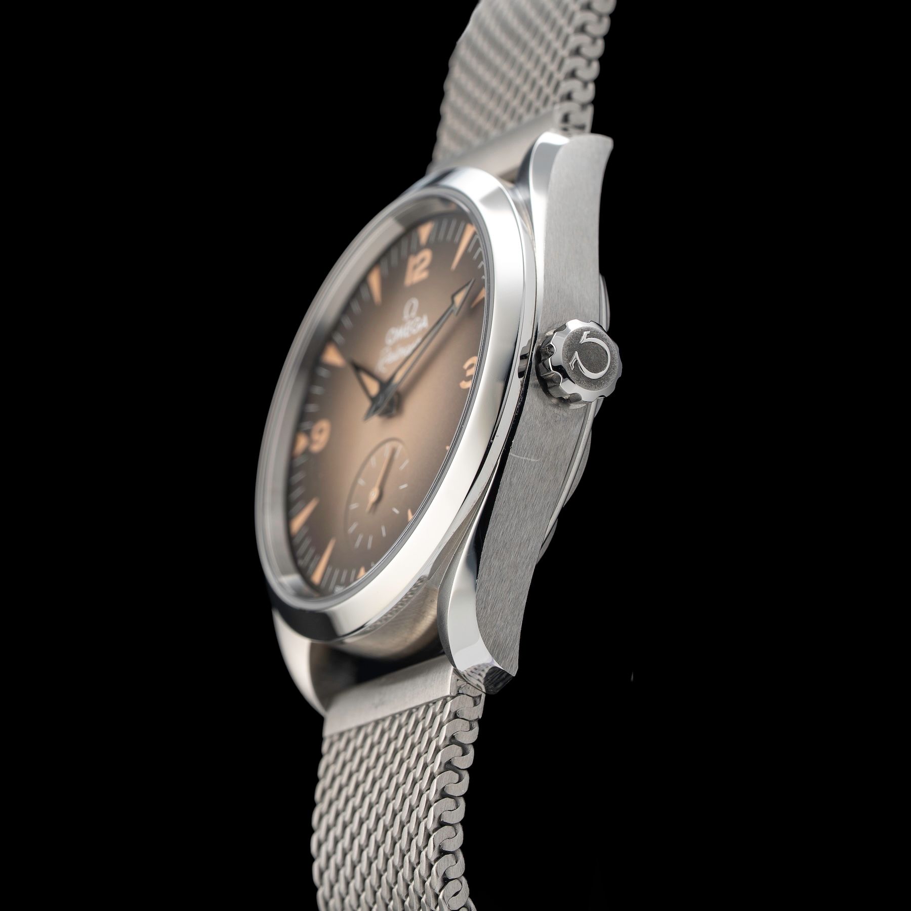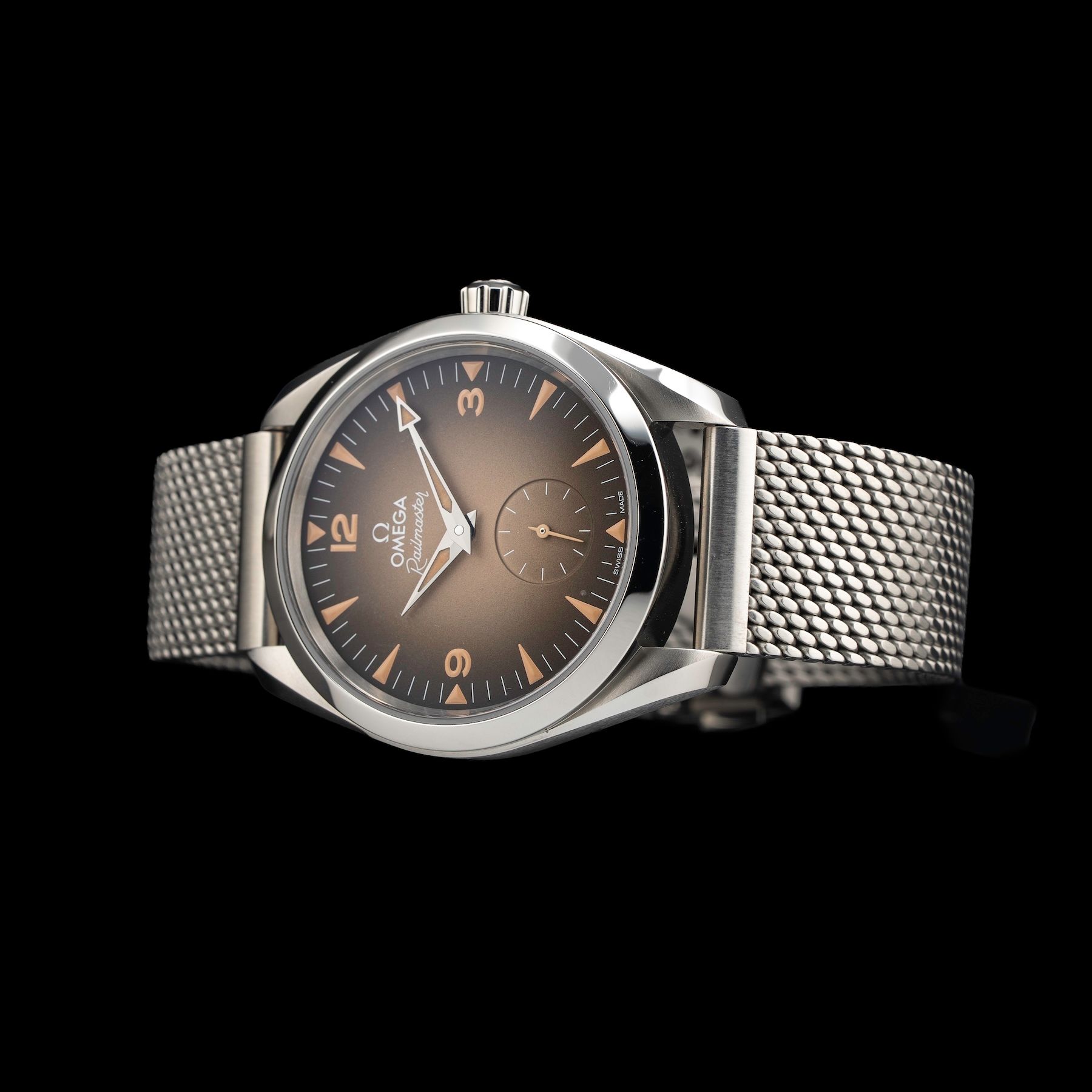 - This timepiece features a 38mm steel case paired with a high quality steel bracelet. It showcases a distinctive brown dial and is powered by a precise automatic winding movement. The watch is designed with a water resistance of up to 150m.
