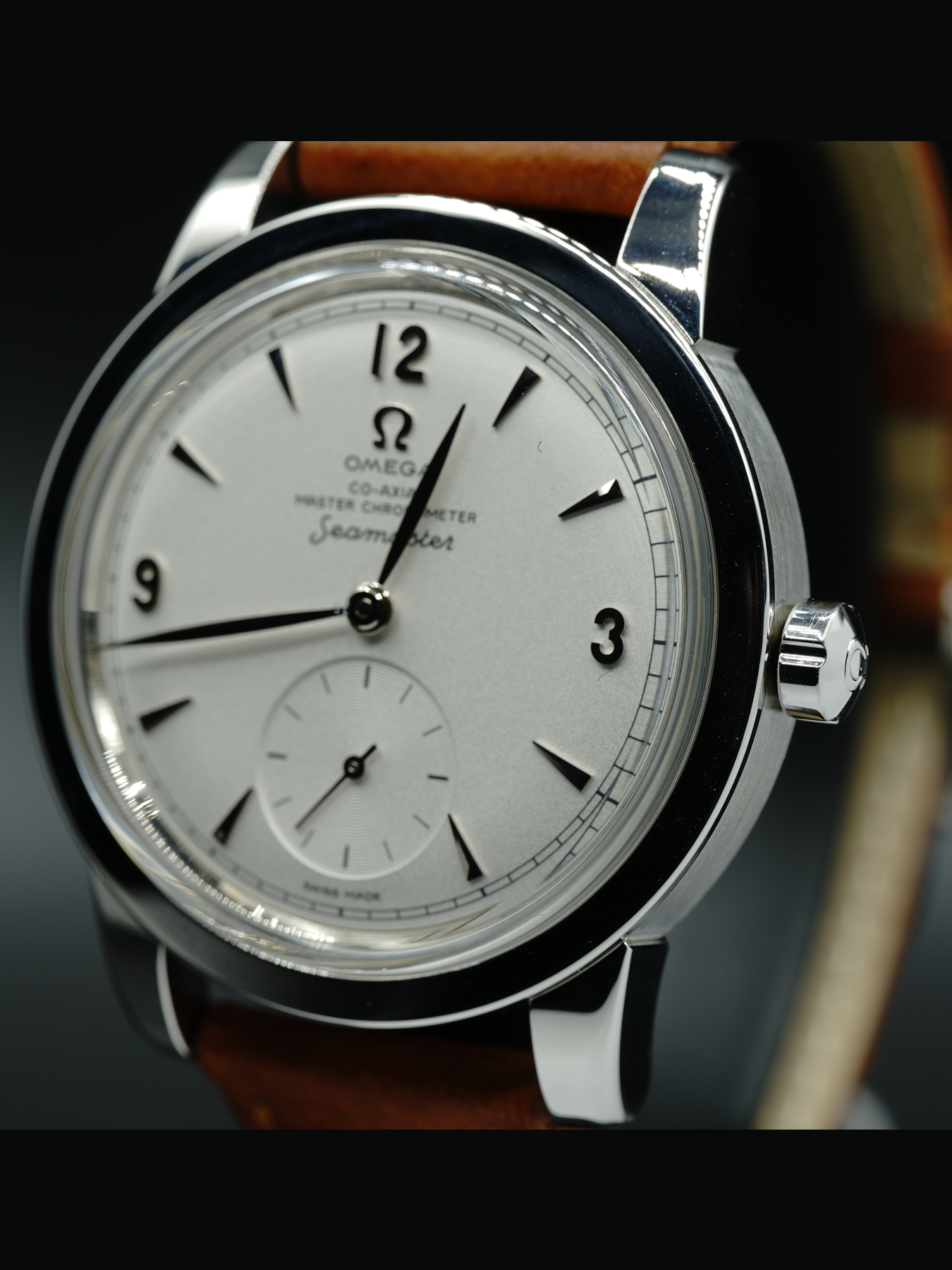 Beautiful small seconds Omega Seamaster in incredible condition. This watch being like new has no scratches anywhere on the watch. Being the small seconds edition, this watch sports a brown leather band with a vintage Omega buckle. This watch includes its original box, papers, and international warranty card dated for august 2019.
