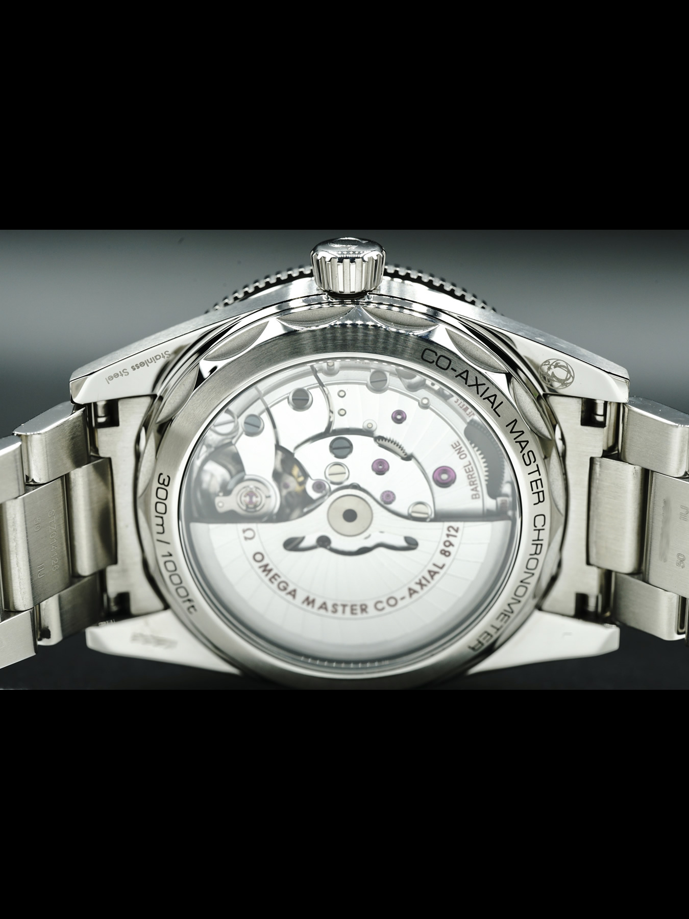 Powered by Omega Calibre 8912 for a power reserve of approximately 60 hours. Water resistance up to 300 meters.