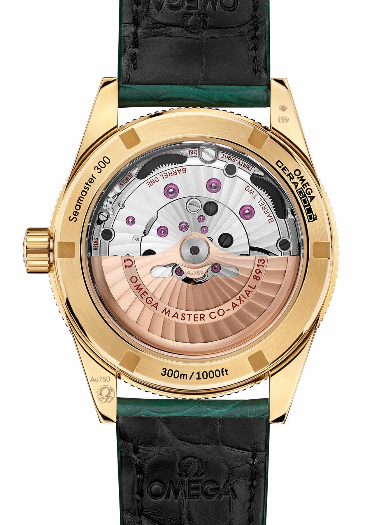 - This timepiece features a 41mm gold case paired with a high quality leather strap. It showcases a distinctive green dial and is powered by a precise automatic winding movement. The watch is designed with a water resistance of up to 300m.