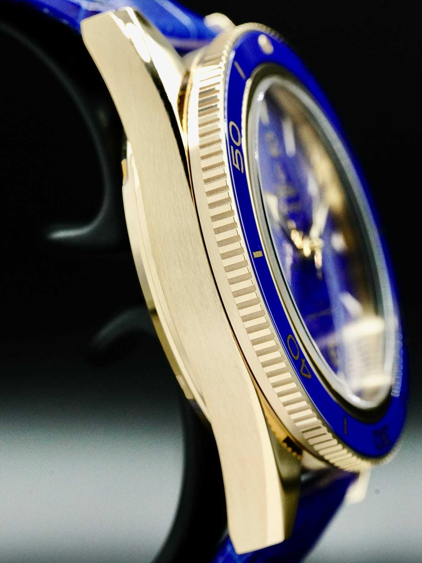 This Omega Seamaster Yellow Gold Blue Chronometer 41mm 234.63.41.21.99.002 is in EXCELLENT condition. It has box and papers. International warranty dated for August 2022.