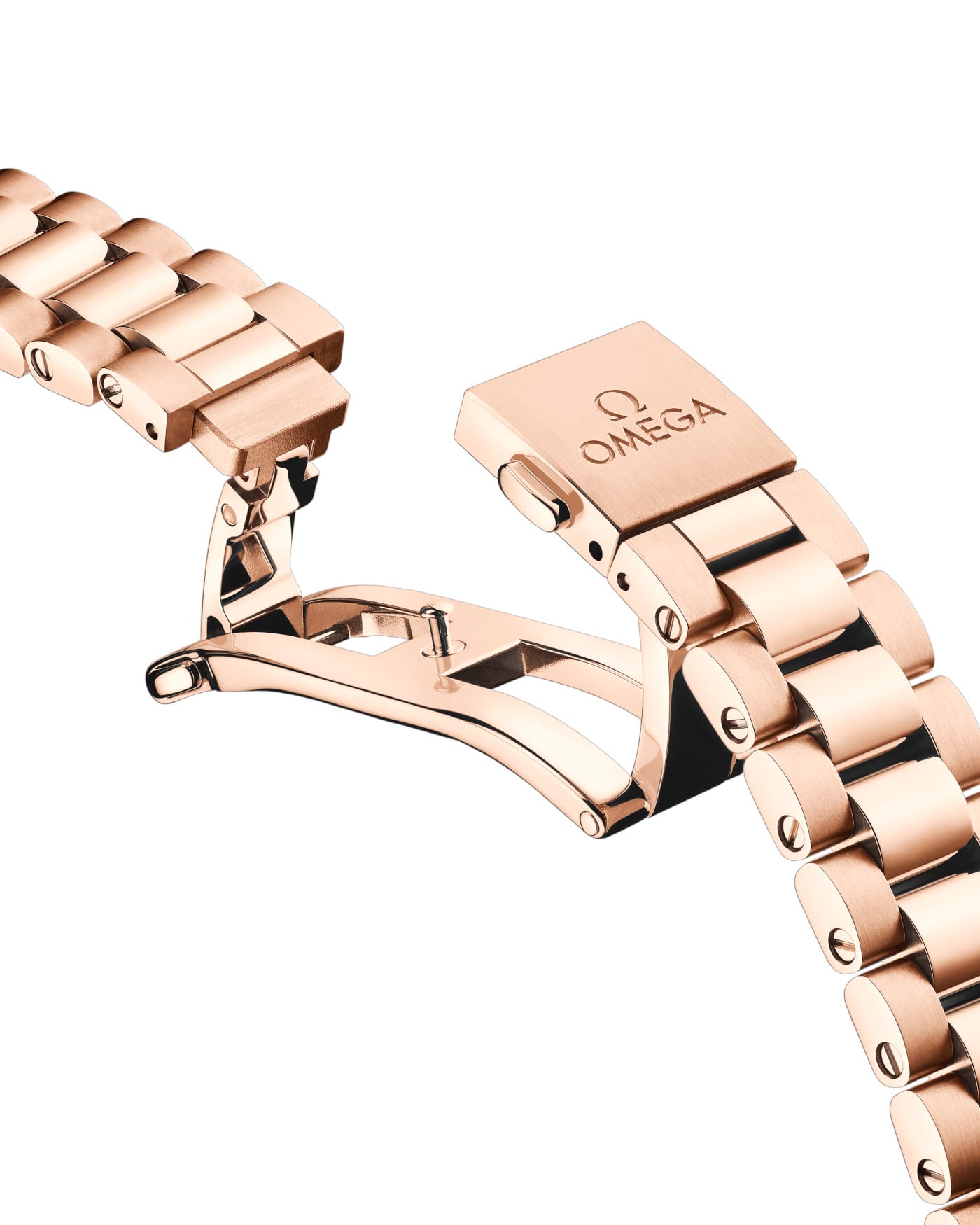 The watch is presented on an integrated 18K Sedna™ Gold bracelet with beautifully rounded polished-brushed links, a foldover butterfly clasp, and OMEGA’s easy comfort-adjustment system.