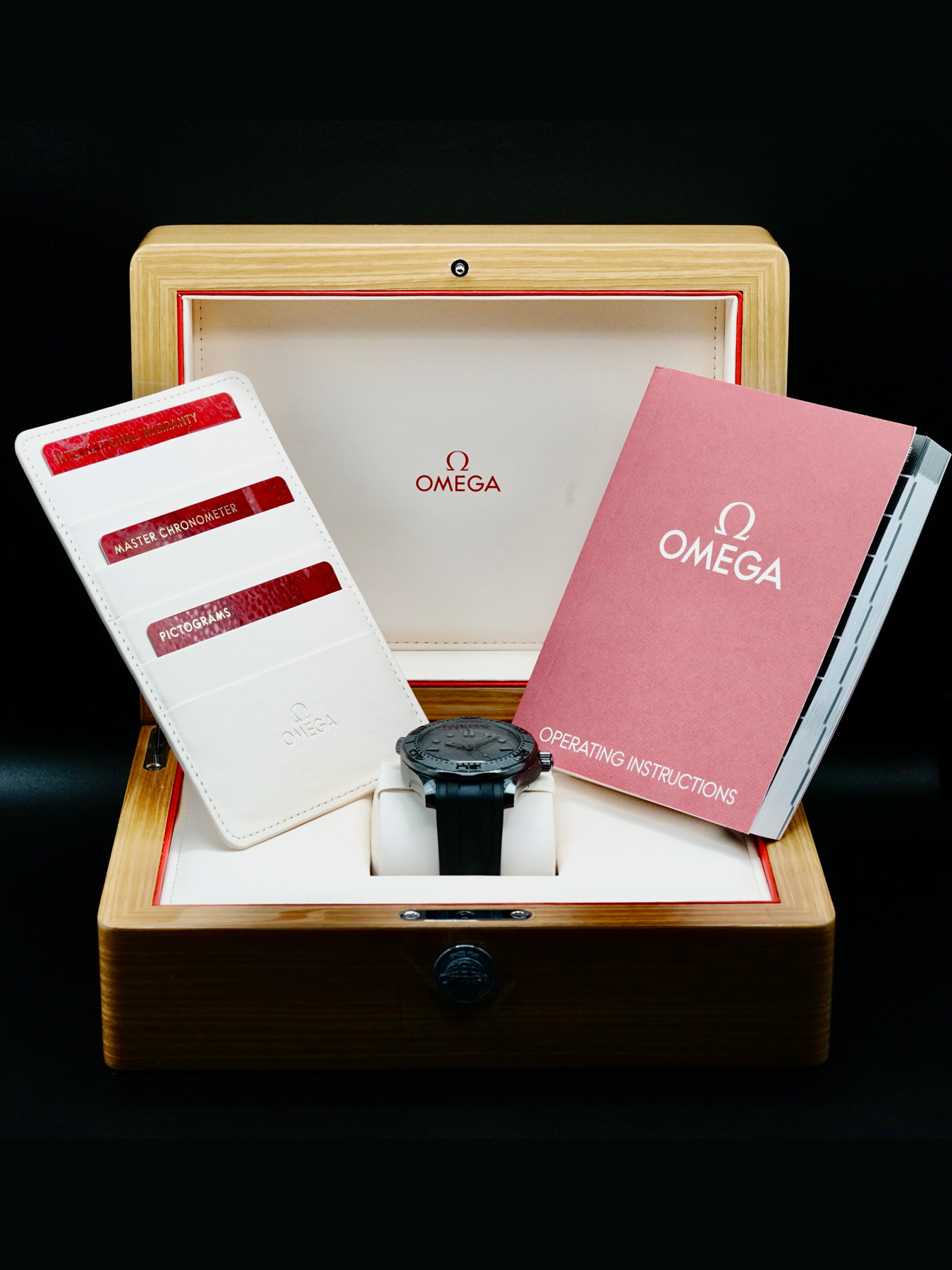 This Omega Seamaster Diver 300 Black Ceramic 210.92.44.20.01.003 is in EXCELLENT condition. This watch includes its original box, operating instructions, and international warranty card dated for August 2023.