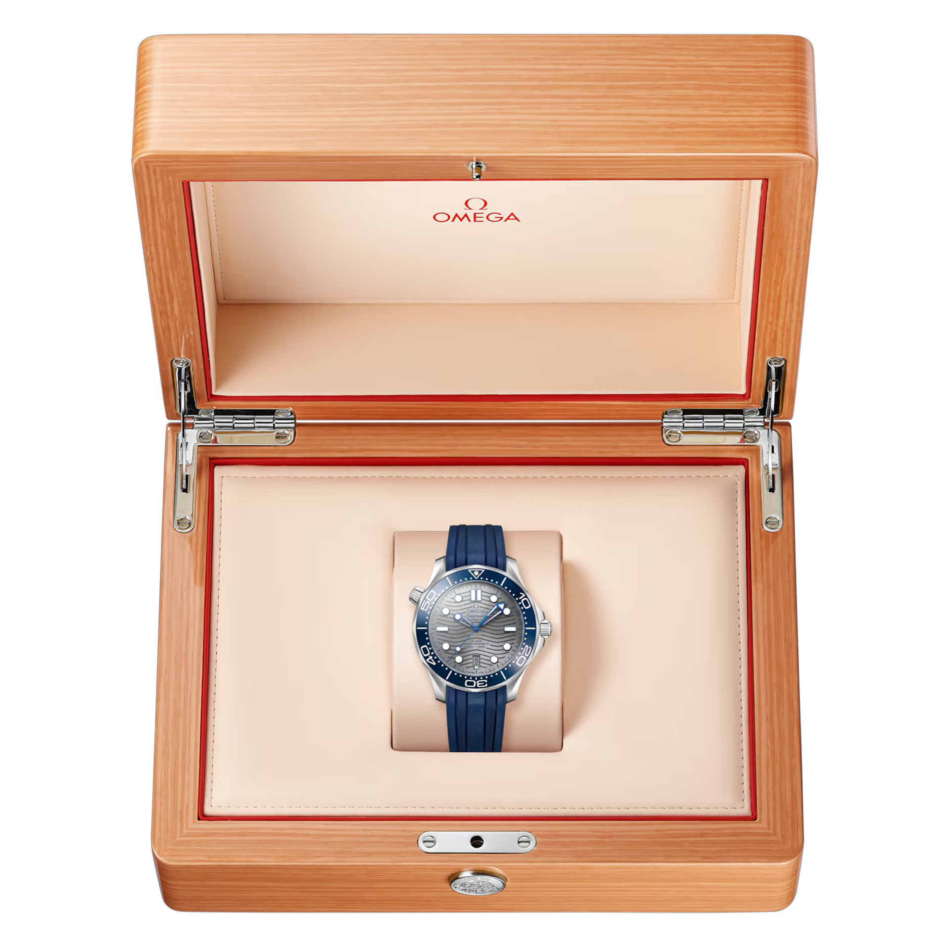 The watch comes in a stylish blue leather strap, but the case is made from stainless steel. The Omega 300m model allows buyers to experiment with different straps. The straps range from stainless steel straps to leather straps and even polyester straps. The watch comes with different combinations of straps. The watch has over 50 strap combinations. Some of the strap combinations available include: