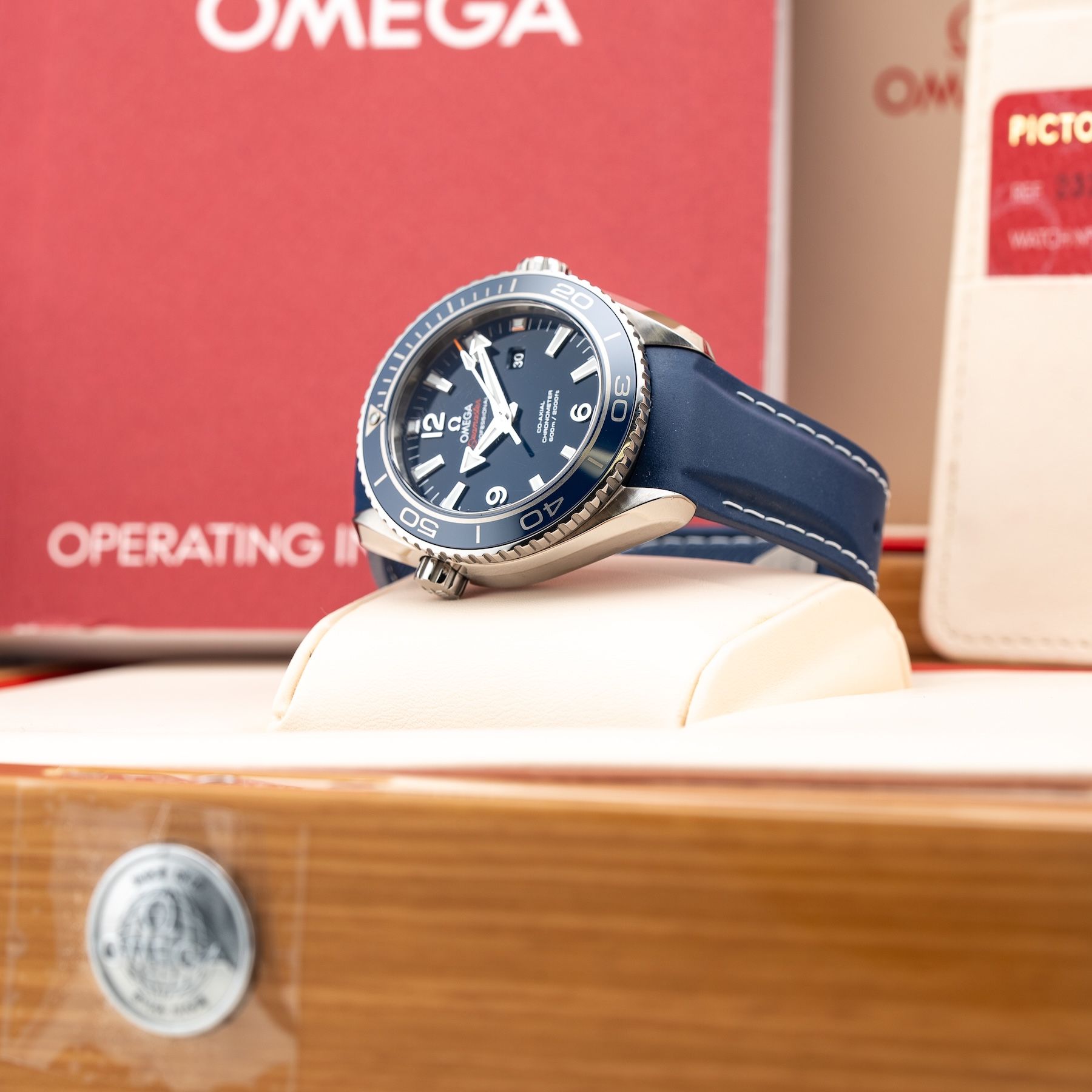 This Omega Seamaster Planet Ocean 232.92.38.20.03.001 is in GREAT condition. This watch includes its Original Box. This watch has been fully authenticated and certified by Exquisite Timepieces. Please note, the photos shown are of the actual watch you will receive.