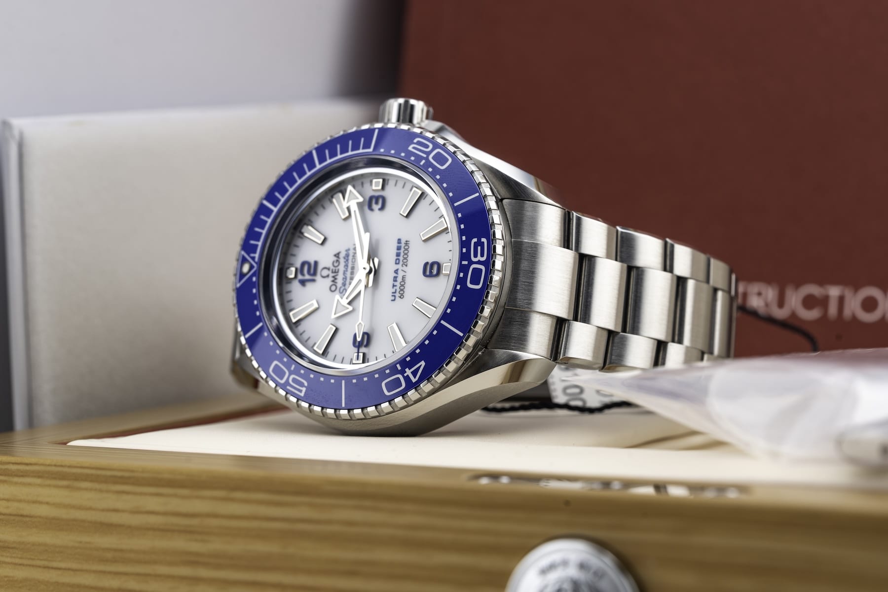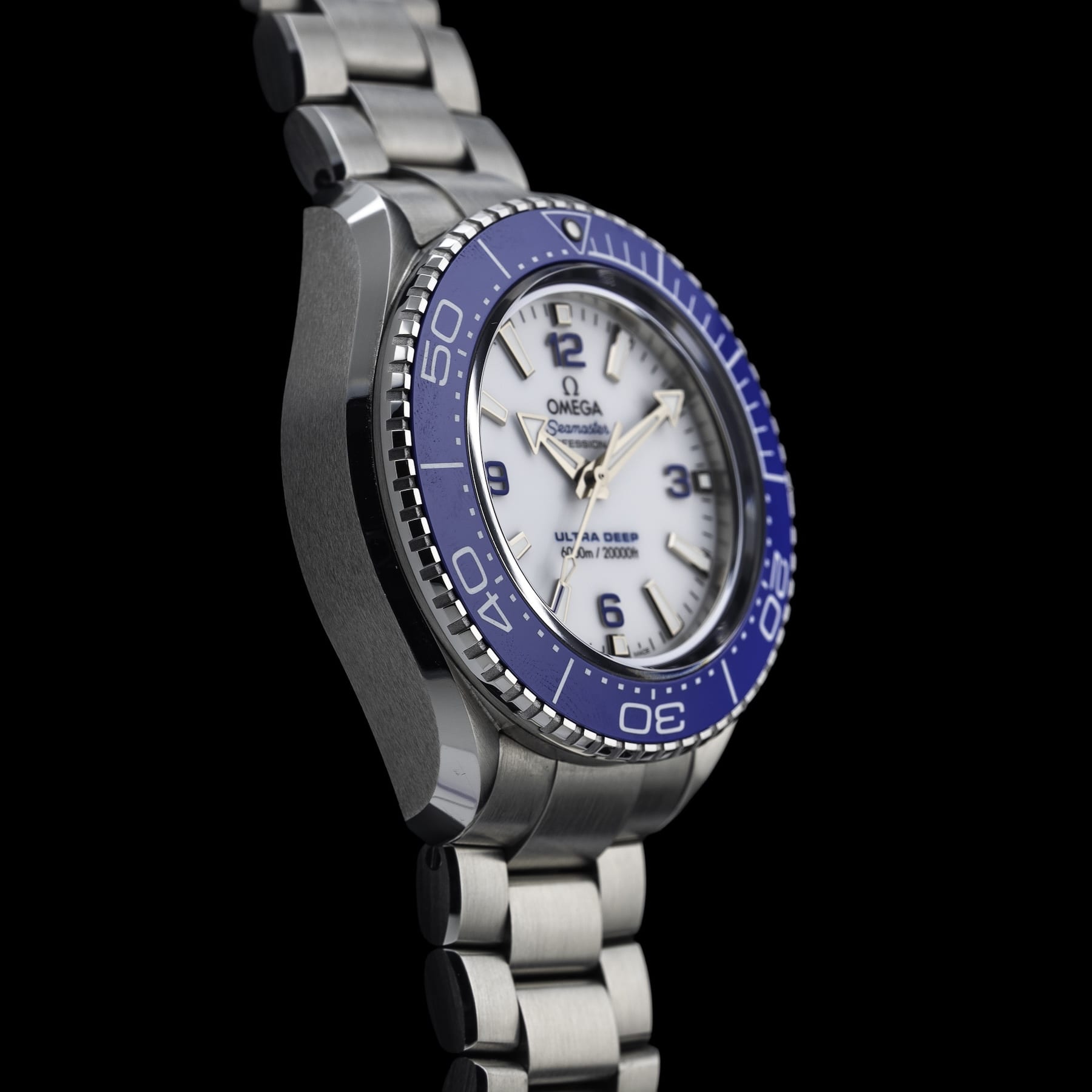 This Omega Seamaster Planet Ocean 6000m Ultra Deep White Dial 215.30.46.21.04.001 is in GREAT condition. This watch includes its Original Box, Original Papers and Warranty Card Dated 9/9/23. Extra Link. This watch has been fully authenticated and certified by Exquisite Timepieces. Please note, the photos shown are of the actual watch you will receive.