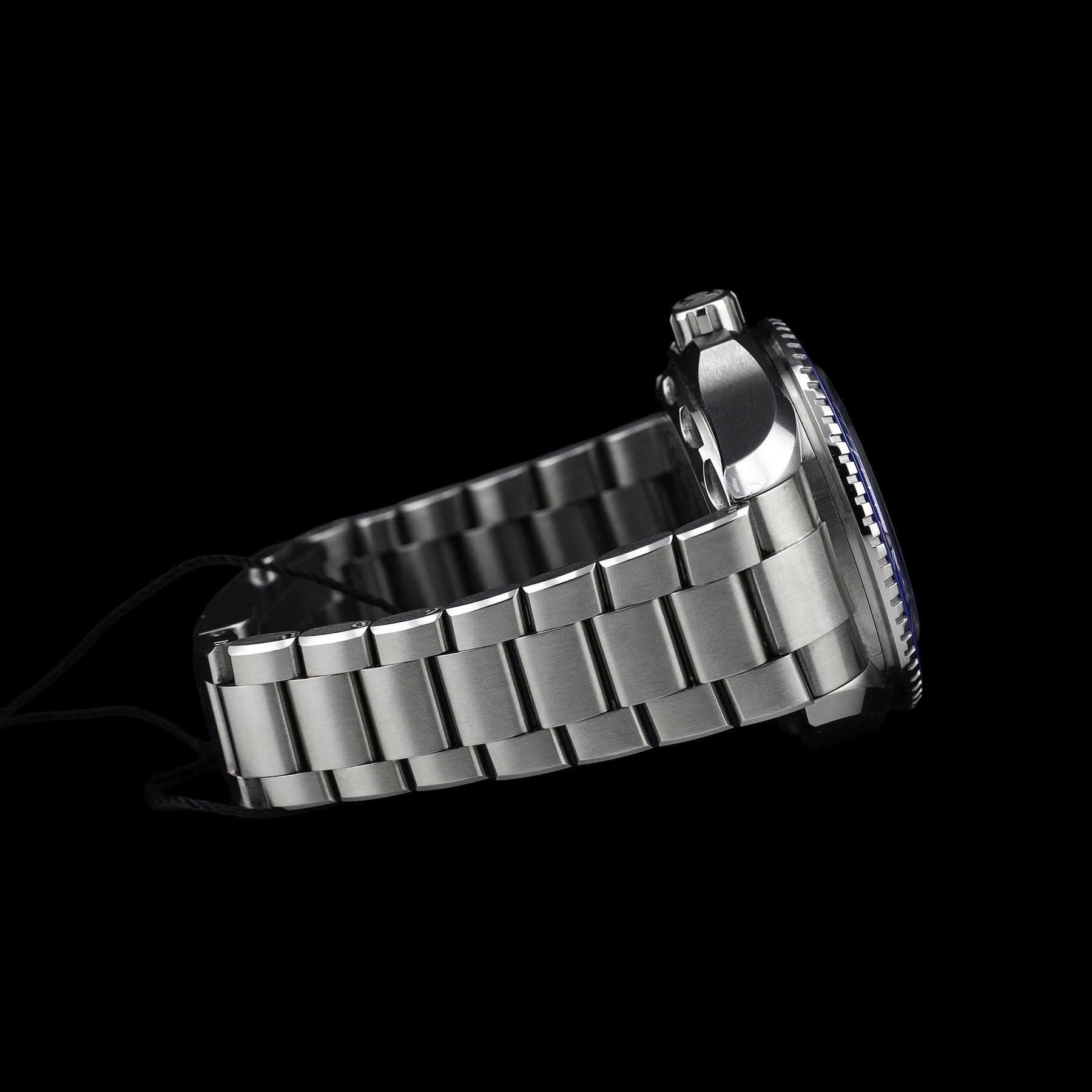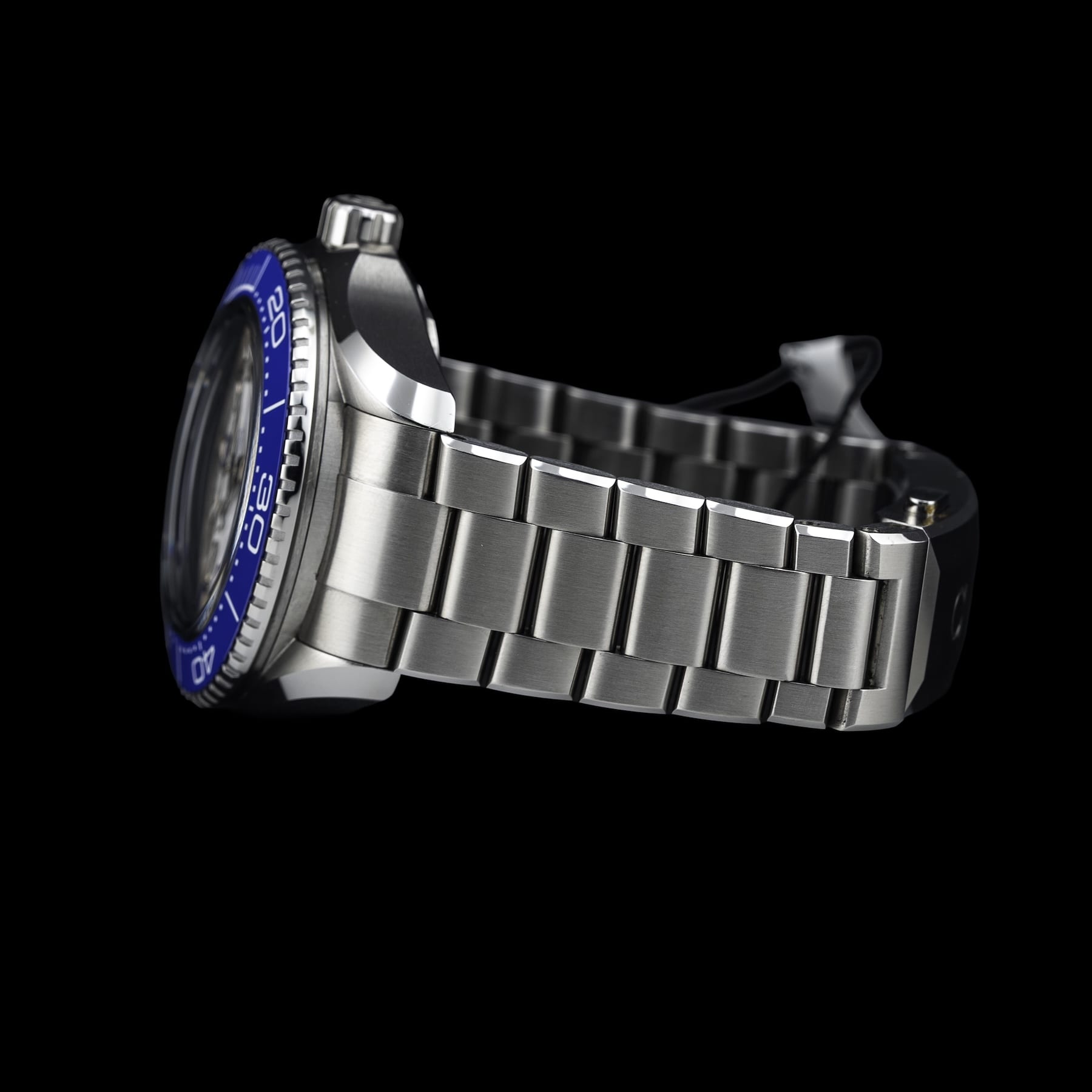 This watch features a 45mm O-Megasteel case on O-Megasteel bracelet. This watch also sports a white dial. Powered by a mechanical automatic movement. Water resistance up to 6000 meters.