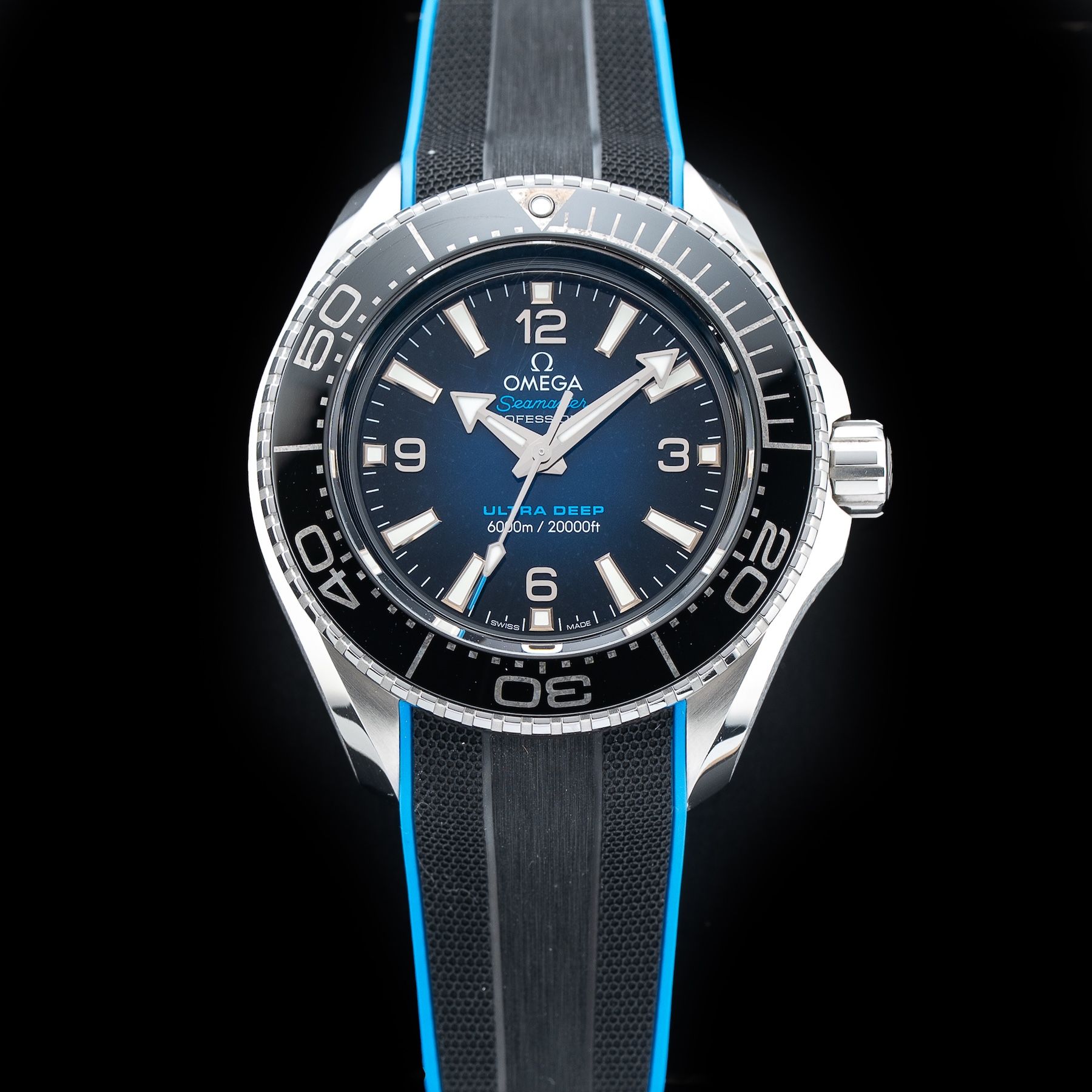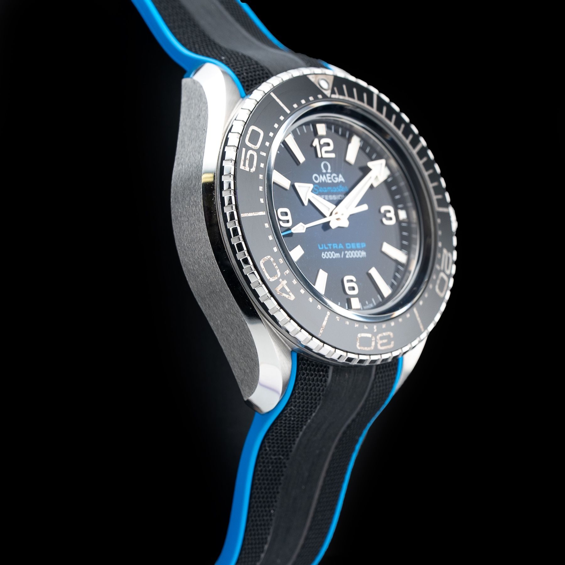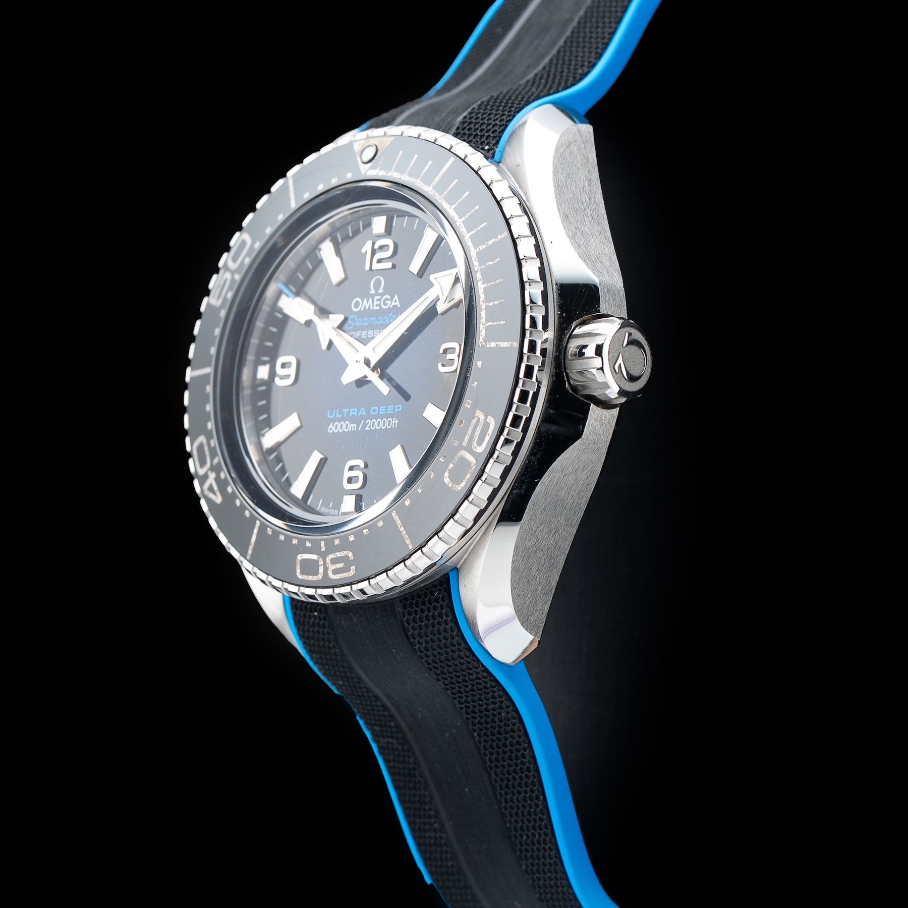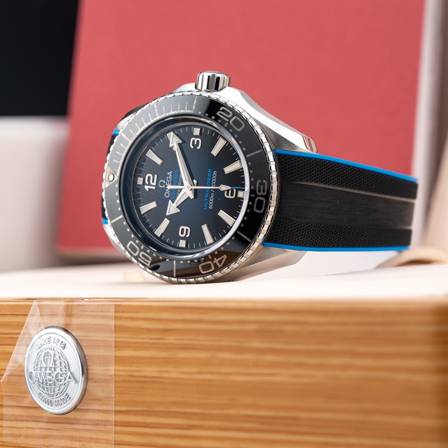 This Omega 215.32.46.21.03.001 Seamaster Planet Ocean 6000m Ultra Deep Blue Dial 45.5mm on Strap is in GREAT condition, it has boxes, papers and warranty card dated 11/09/23. This watch has been fully authenticated and certified by Exquisite Timepieces. Please note, the photos shown are of the actual watch you will receive.