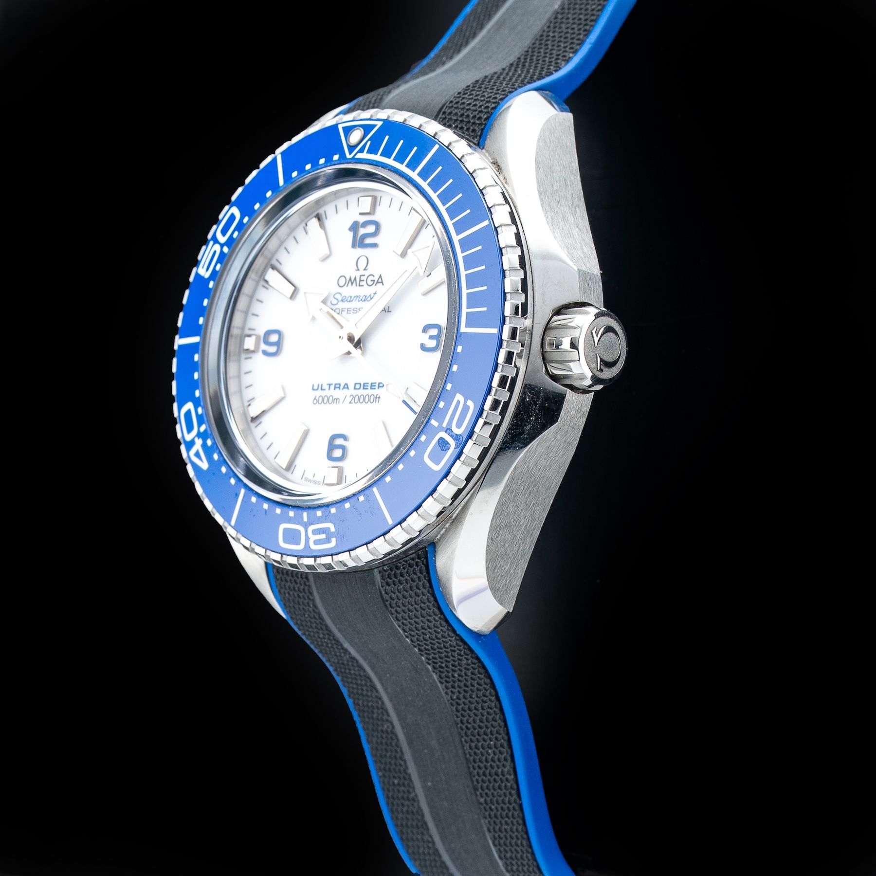 This Omega Seamaster Planet Ocean 6000m Ultra Deep White Dial 45.5mm on Strap 215.32.46.21.04.001 is in GREAT condition. This watch includes its Original Box, Original Papers and Warranty Card Dated 10/2023. This watch has been fully authenticated and certified by Exquisite Timepieces. Please note, the photos shown are of the actual watch you will receive.