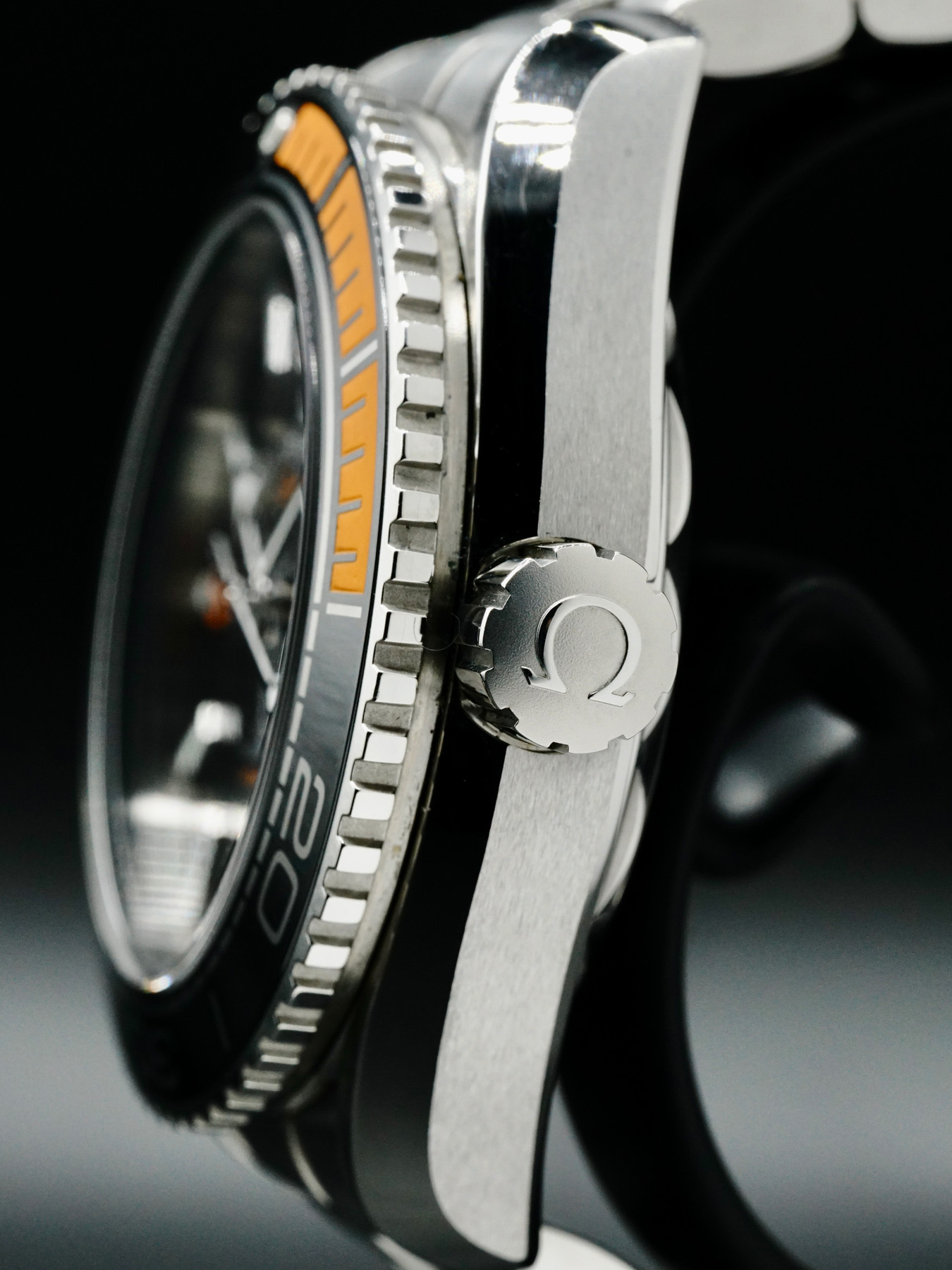 This Omega Seamaster Planet Ocean 600M 215.30.44.21.01.002 features a 43.5mm stainless steel case mounted on steel bracelet. This watch also sports a black dial.