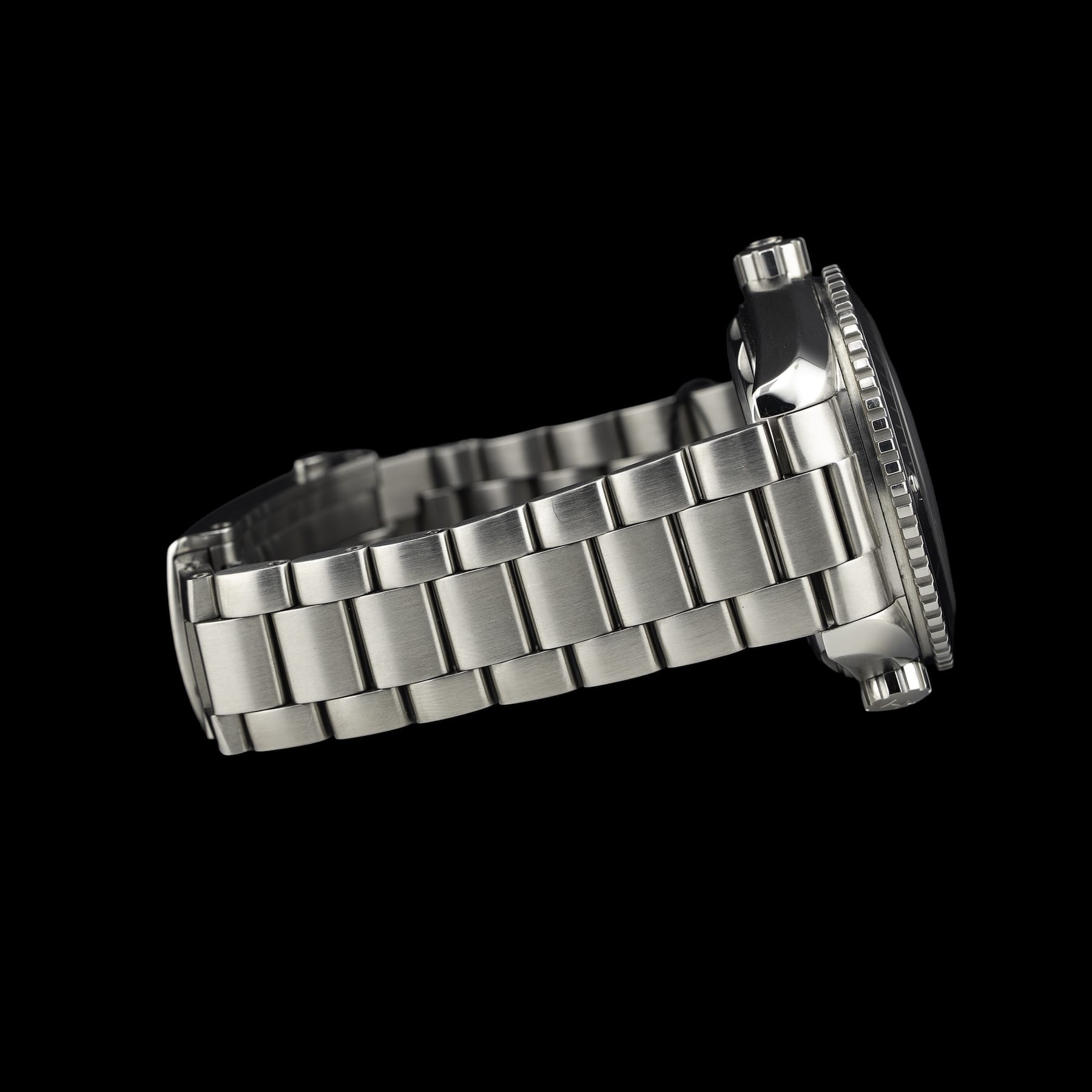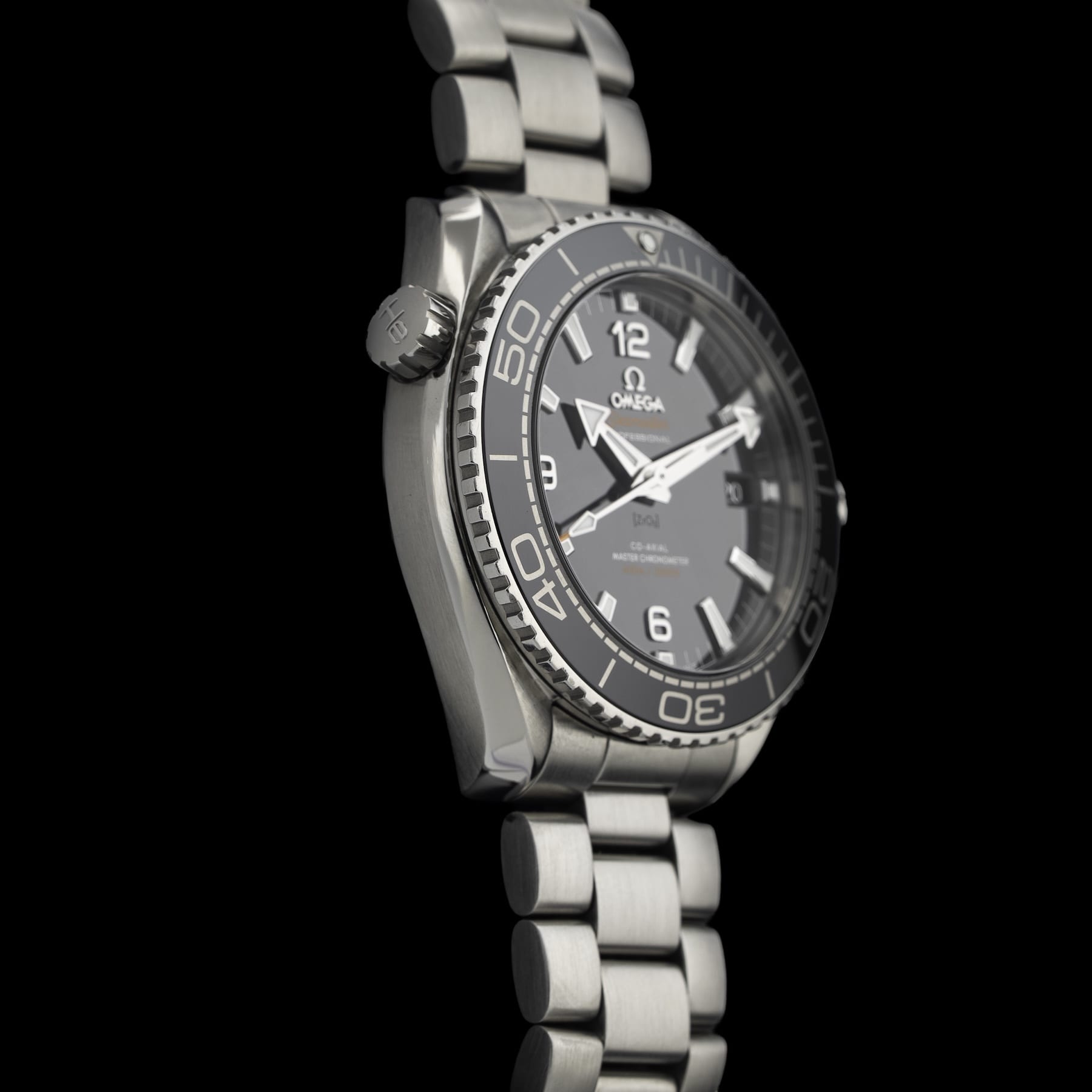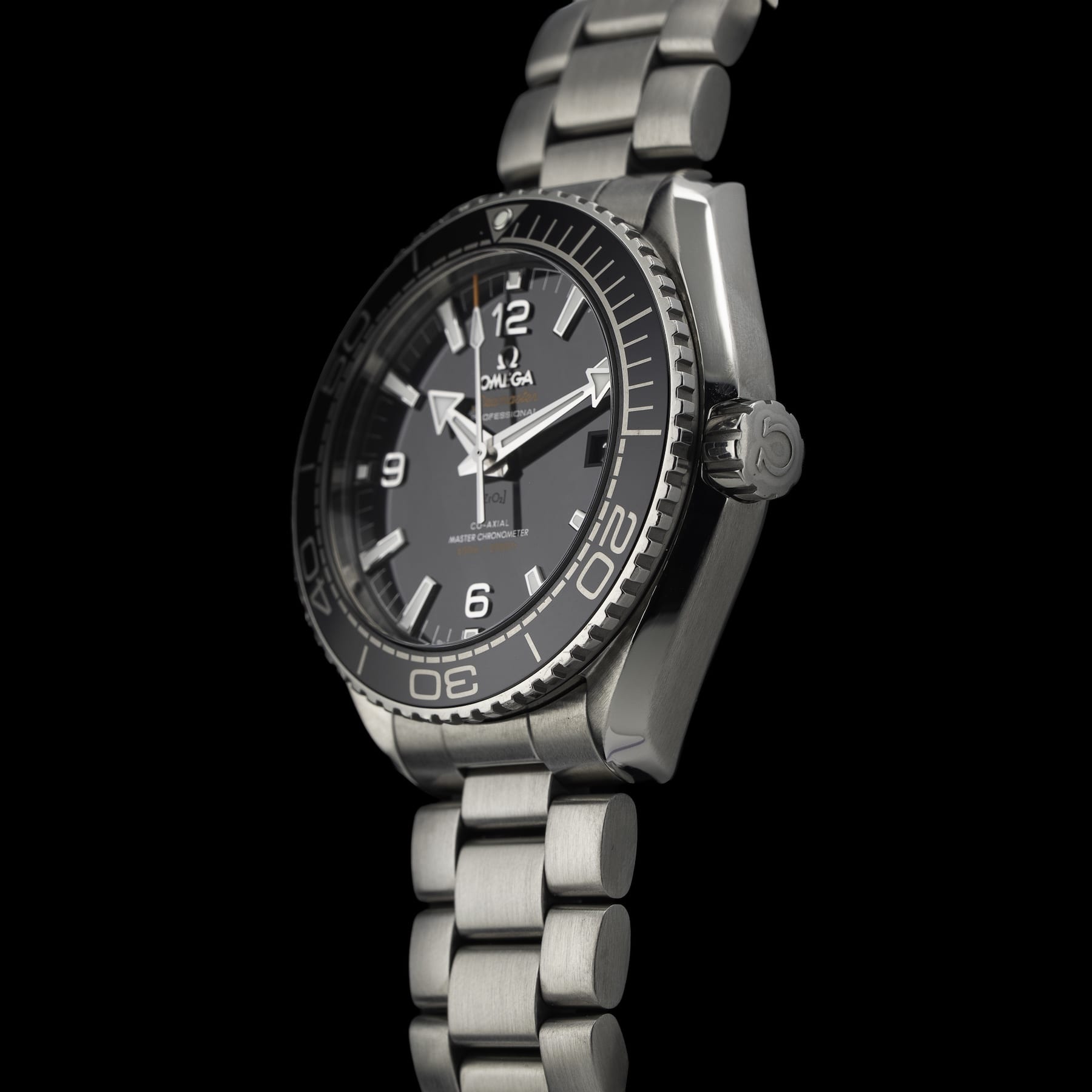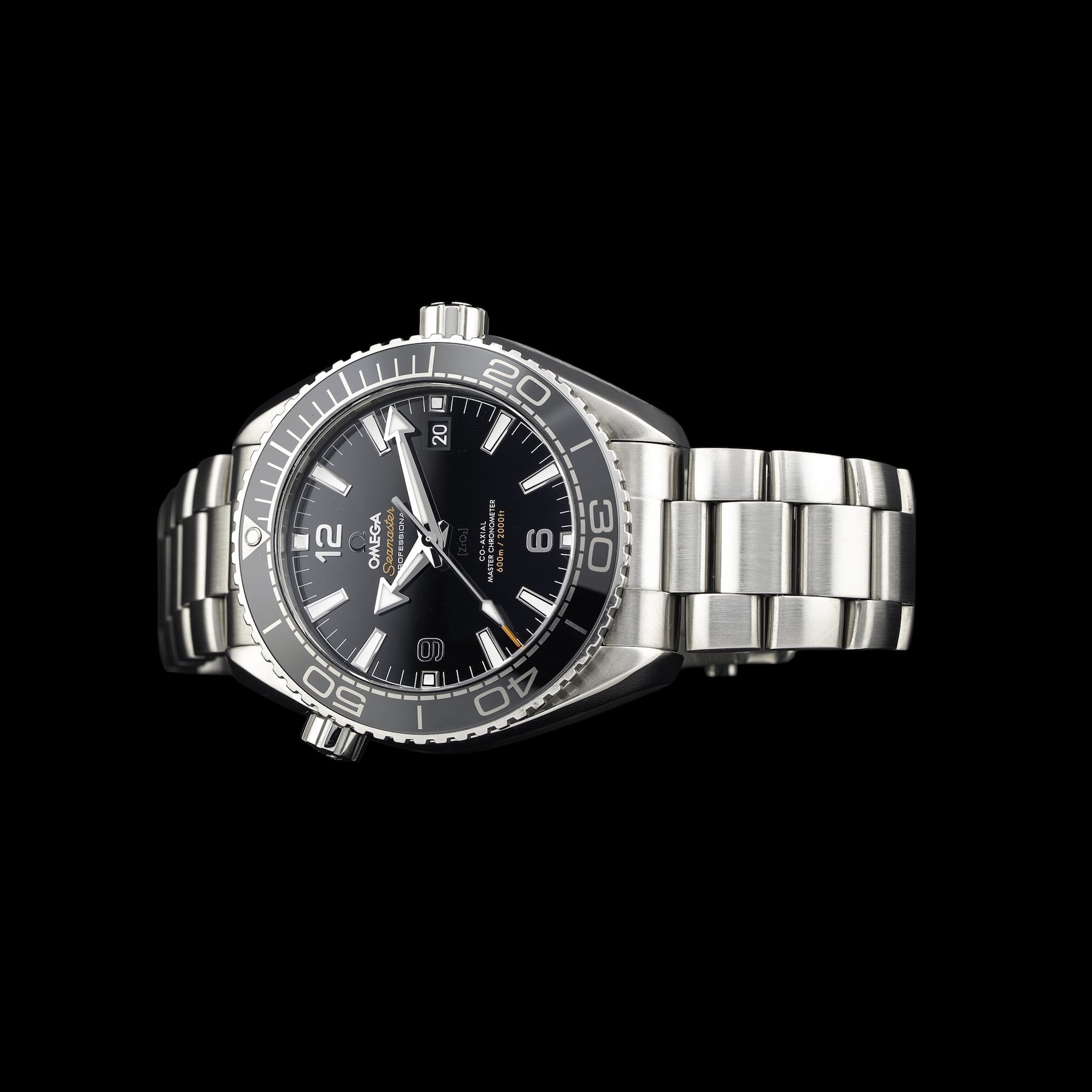 This watch features a 43mm stainless steel case on stainless steel bracelet. This watch also sports a black dial. Powered by a mechanical automatic movement. Water resistance up to 600 meters.