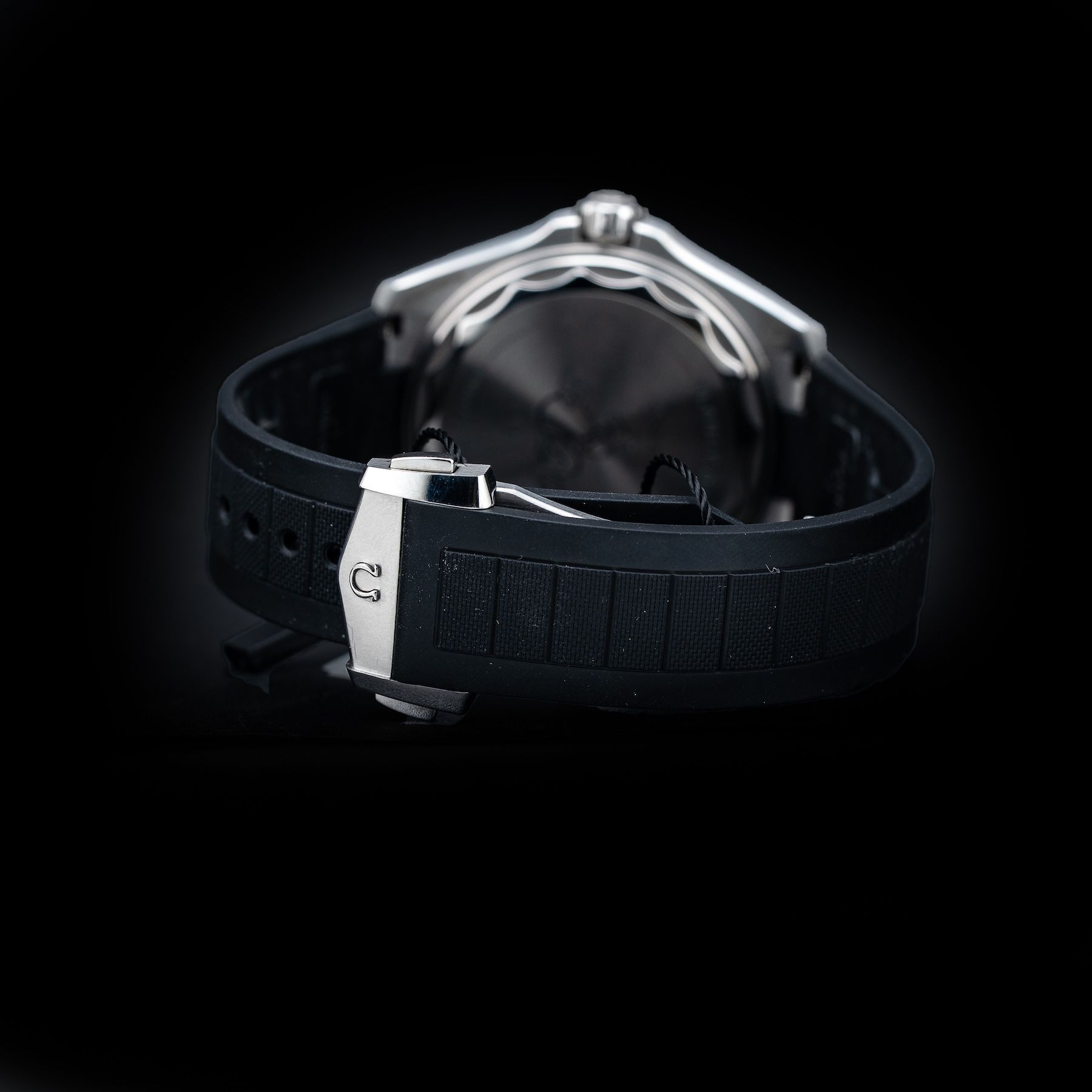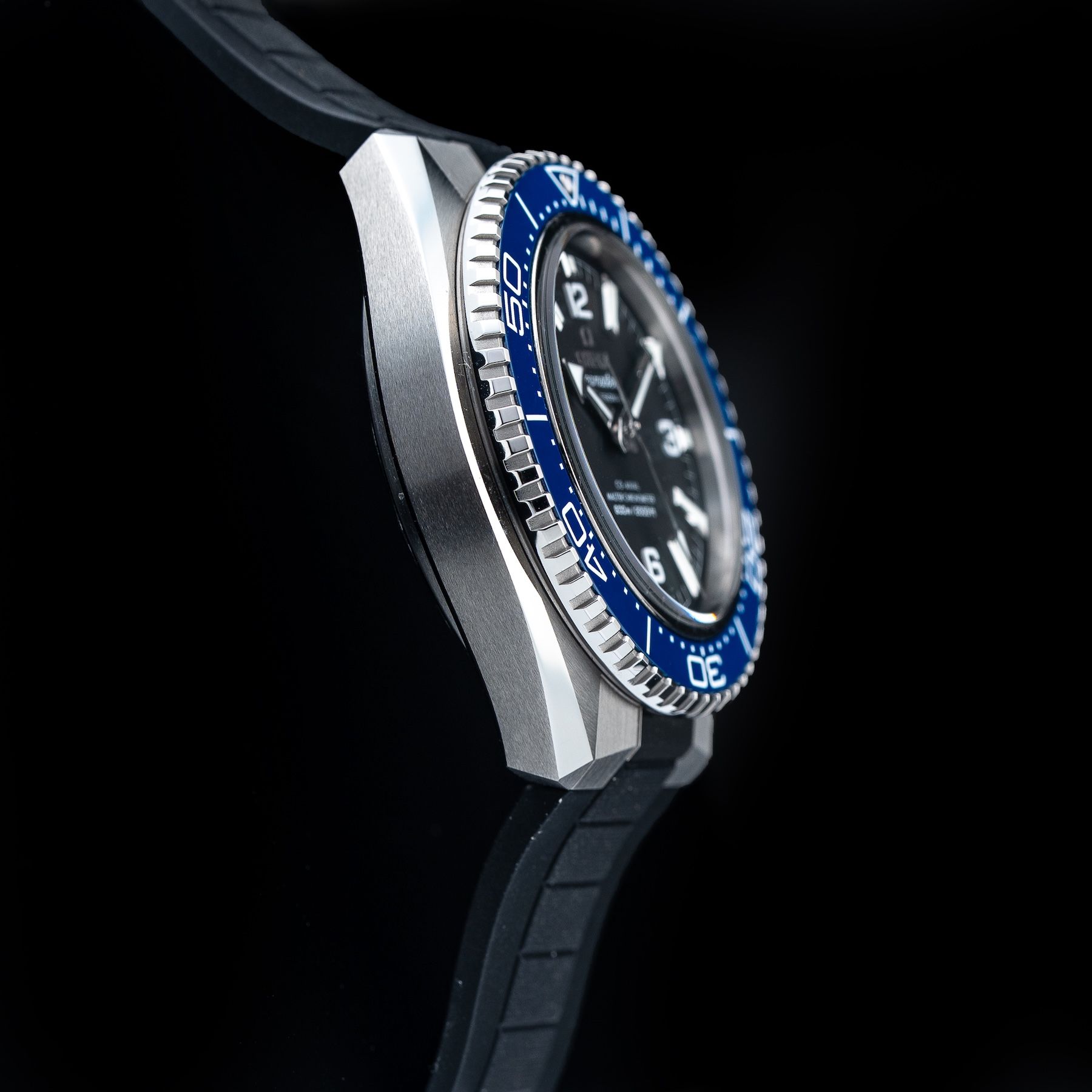 This watch features a 42mm steel case on rubber strap. This watch also sports a black dial. Powered by a self-winding movement. Water resistance up to 600 meters.